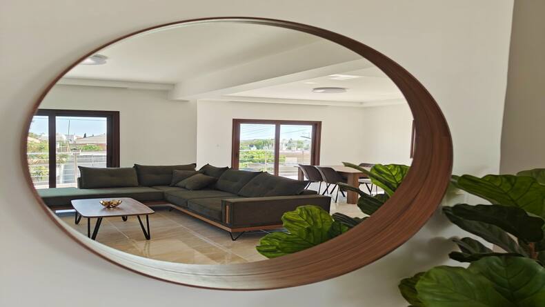 This exceptional 3-bedroom, 2-bathroom top floor house, spanning 110 sqm, is situated in the serene Agios Sylas area of Limassol. A mere 5-minute drive from MyMall, the apartment offers the perfect balance of convenience and tranquility. The property comes fully equipped with modern electrical appliances and tasteful furnishings, creating a space that feels both luxurious and homely. The apartment boasts four efficient air conditioning units, ensuring optimal comfort throughout the year. The center piece of this extraordinary home is the large open-space kitchen, featuring an elegant island bar, perfect for social gatherings or family meals. The apartment comes with a clean title deed, guaranteeing a smooth and hassle-free acquisition process.