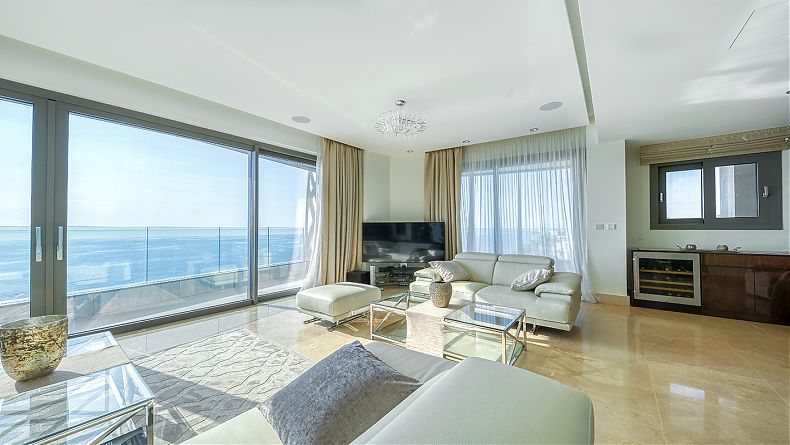 The apartment is located on the 12th floor and occupies the entire floor, there is a panoramic view not only of the sea, but also of the mountains.