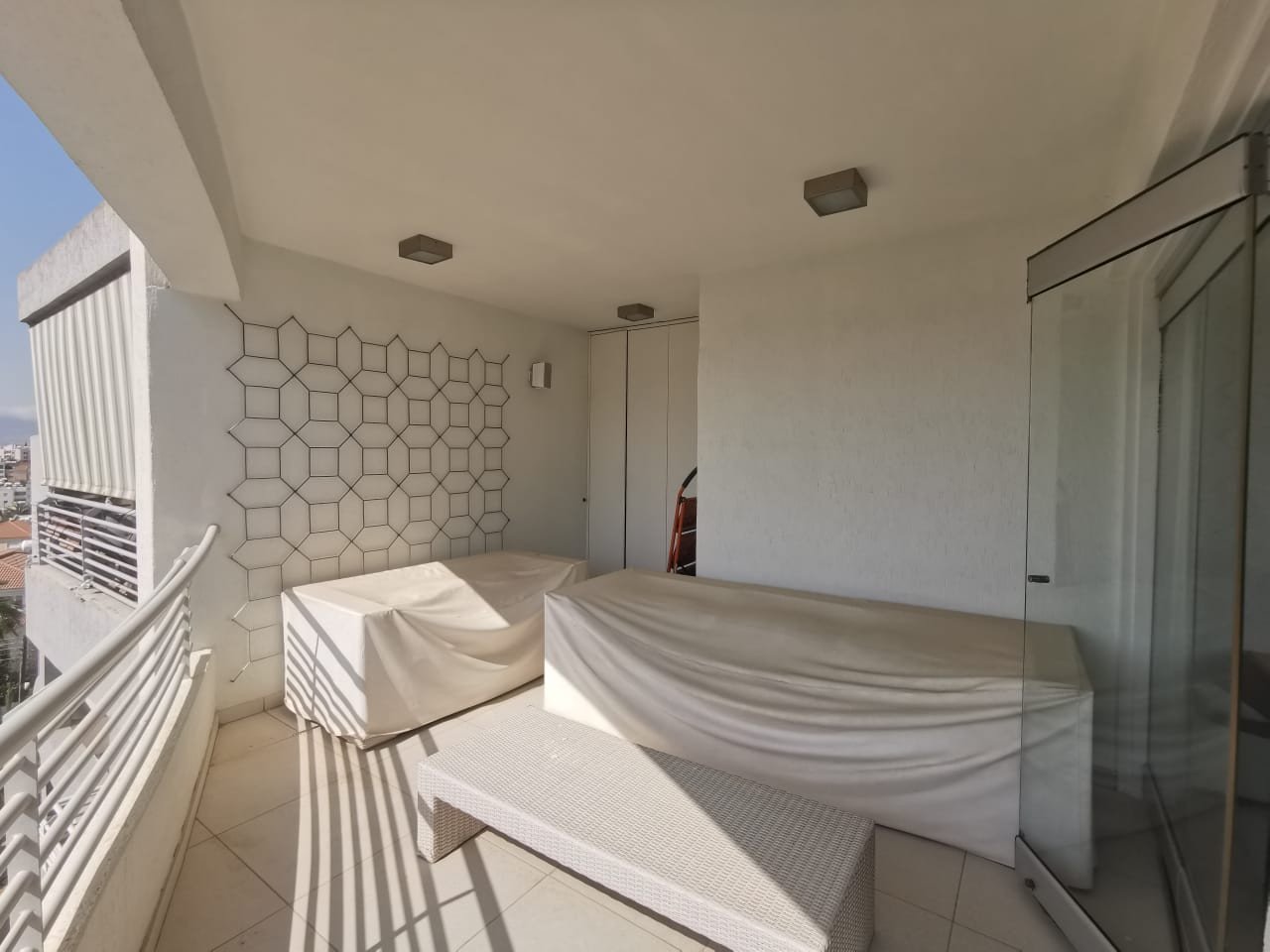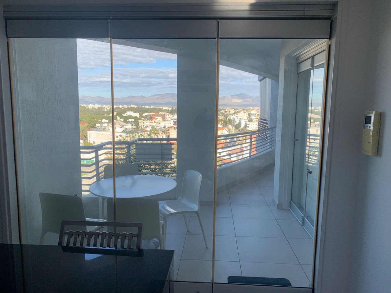 Glass doors/walls that open up the inside of the apartment to the covered verandas and present a unified space!