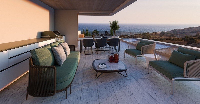 Each apartment is designed and positioned in such a way as to allow unobstructed views of the surrounding large open spaces, which feature a wealth of greenery and the ancient ruins of Amathounta nearby. Just beyond, the azure blue waters of the Mediterranean Sea sparkle within view, visible through the large windows and ample balconies, which stream in an abundance of natural light.