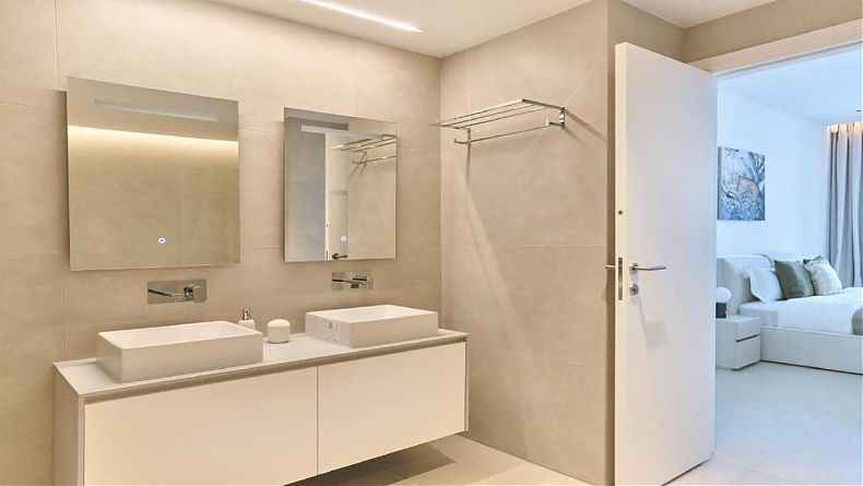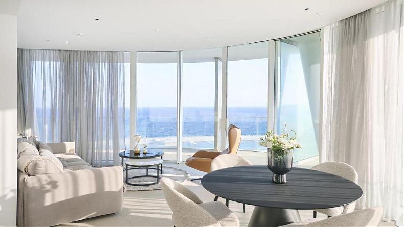 3 bedroom luxury apartment located on the 14th floor of the new Residence in Agia Napa Marina. The 25-story tower has 125 apartments that range from 1, 2 and 6 bedroom residences to a 7 bedroom full floor penthouse on the top two floors. The East tower is located in the commercial centre of the harbor, offering residents and visitors a vibrant and bustling environment.
