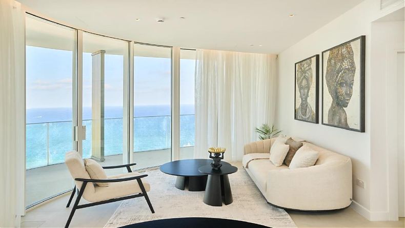 3 bedroom luxury apartment located on the 19th floor of the new Residence in Agia Napa Marina. The 25-story tower has 125 apartments that range from 1, 2 and 6 bedroom residences to a 7 bedroom full floor penthouse on the top two floors. The East tower is located in the commercial centre of the harbor, offering residents and visitors a vibrant and bustling environment.