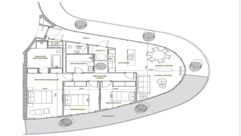 Penthouses on the upper floors offer 360-degree panoramic views. Residents of apartments with rounded ends have a 180-degree view.