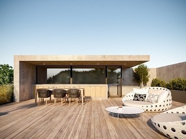 This boutique urban chic apartments consist of Six three-bedroom apartments on the first, second, and third floor and Two three- bedroom penthouses with a roof garden and a swimming pool on the fourth and fifth floor.