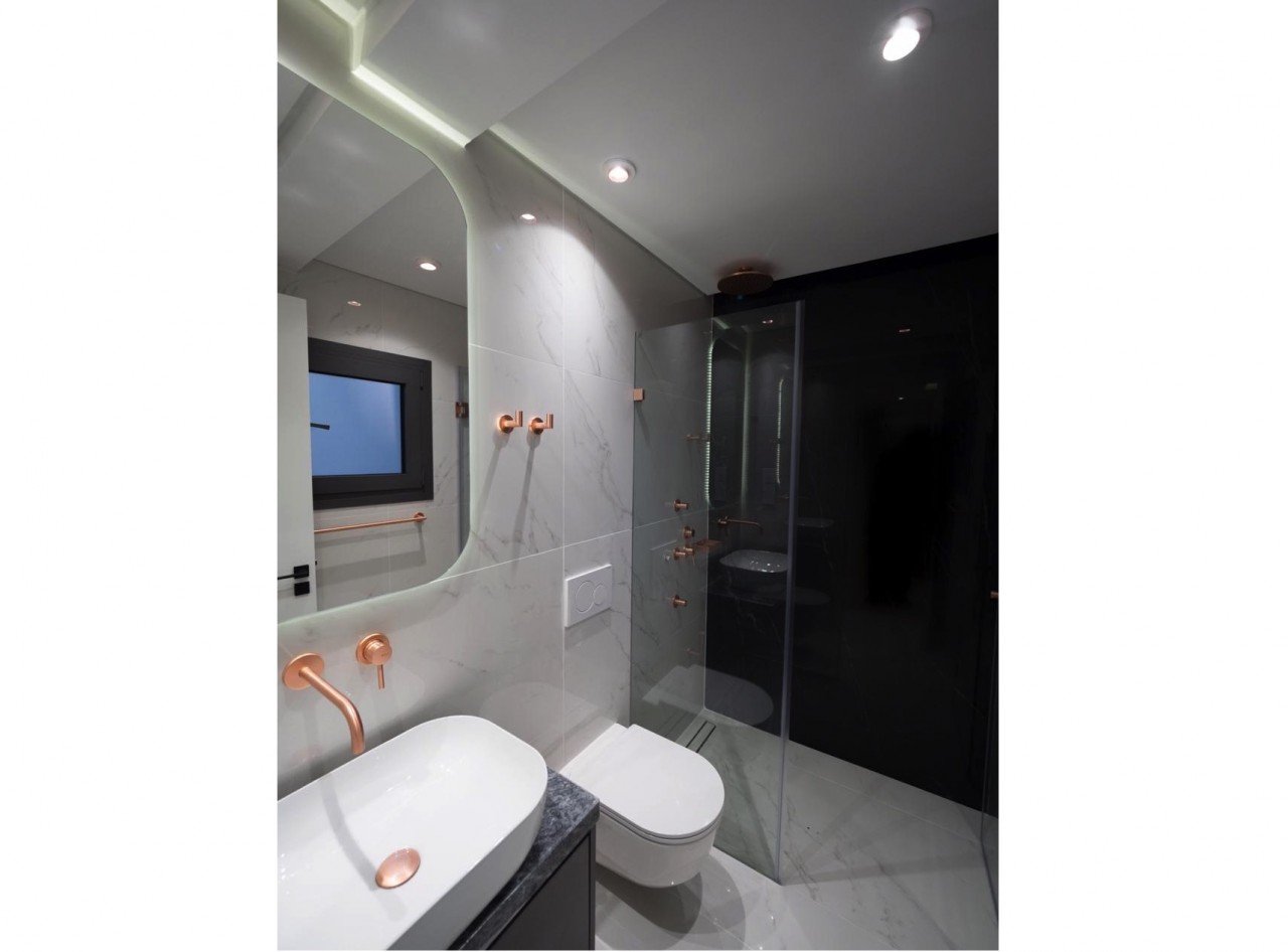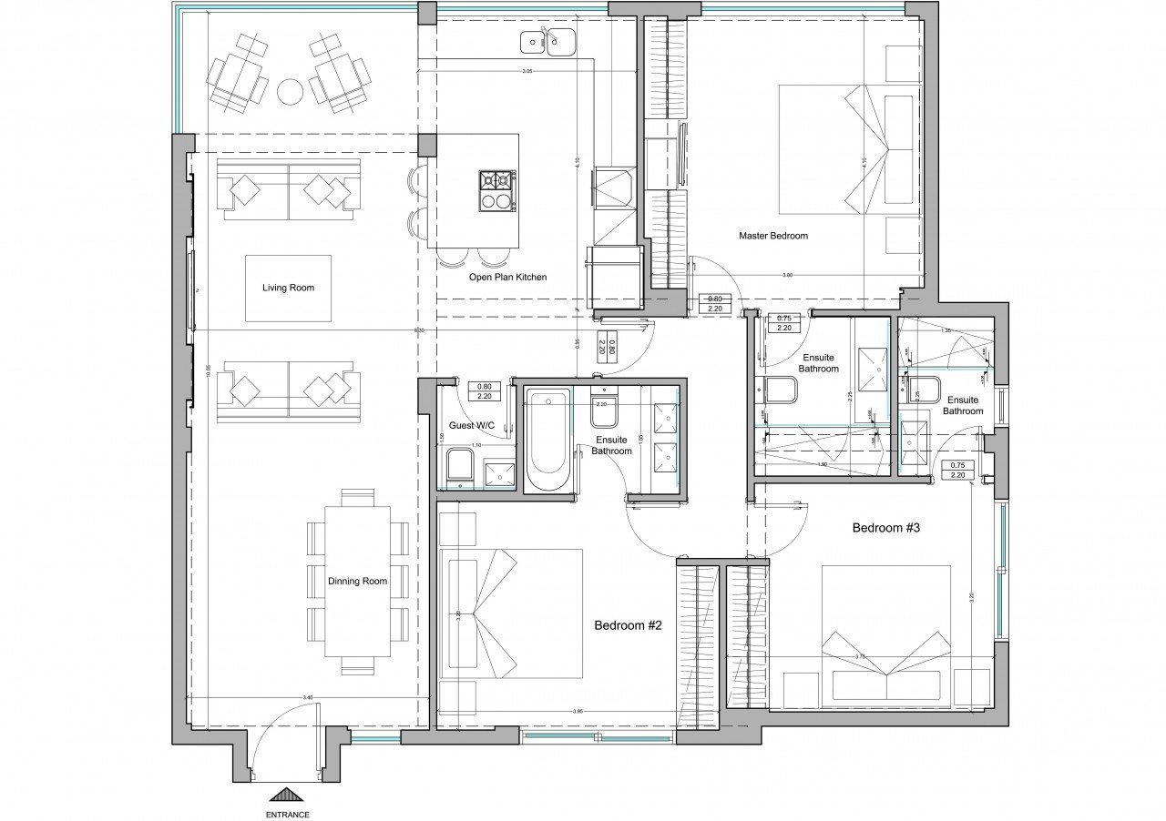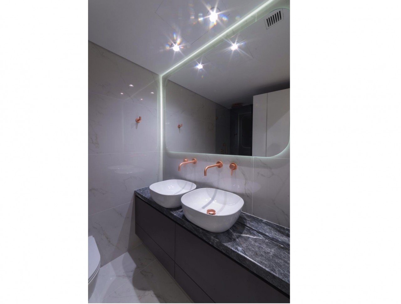 The apartment offers bespoke design, crafted with high end finishing such as marble, granite stones, real wood floors, open plan design kitchen and living-room. Includes a guest w/c, 1 master bedroom with en-suite bathroom and 2 additional double bedrooms with en-suite bathrooms.