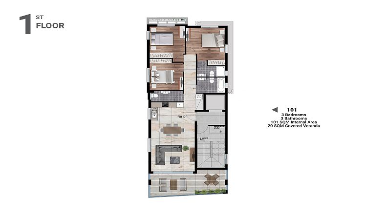 101m2 internal covered area