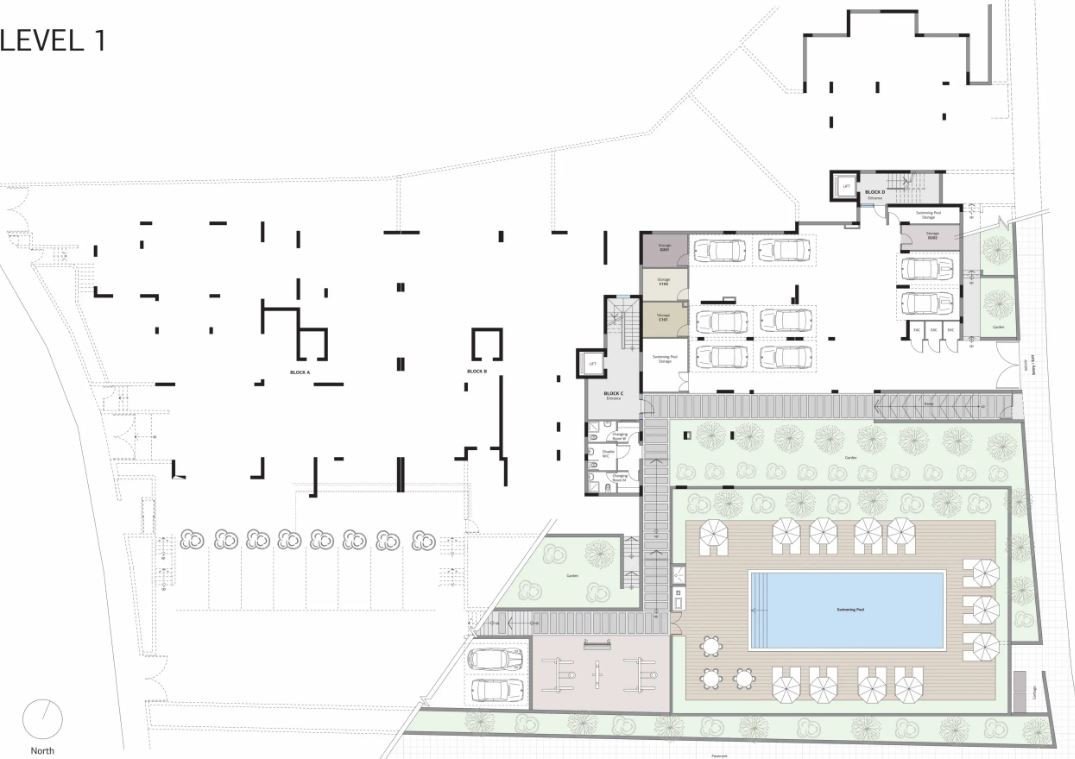 This gated building community consists of 4 double-storey blocks, all connected to a magnificent pool with a sun terrace and a playground, ensuring that both residents and visitors enjoy the spacious and welcoming atmosphere.