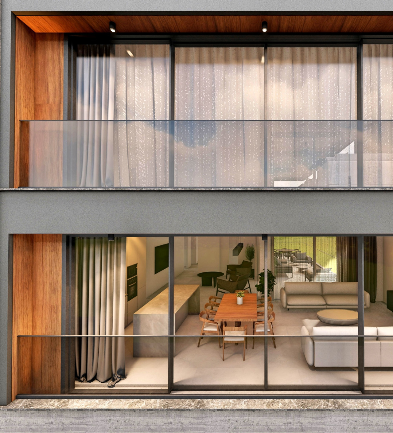 Full height aluminum thermal (MU 3000) window and door frames with double glazing
