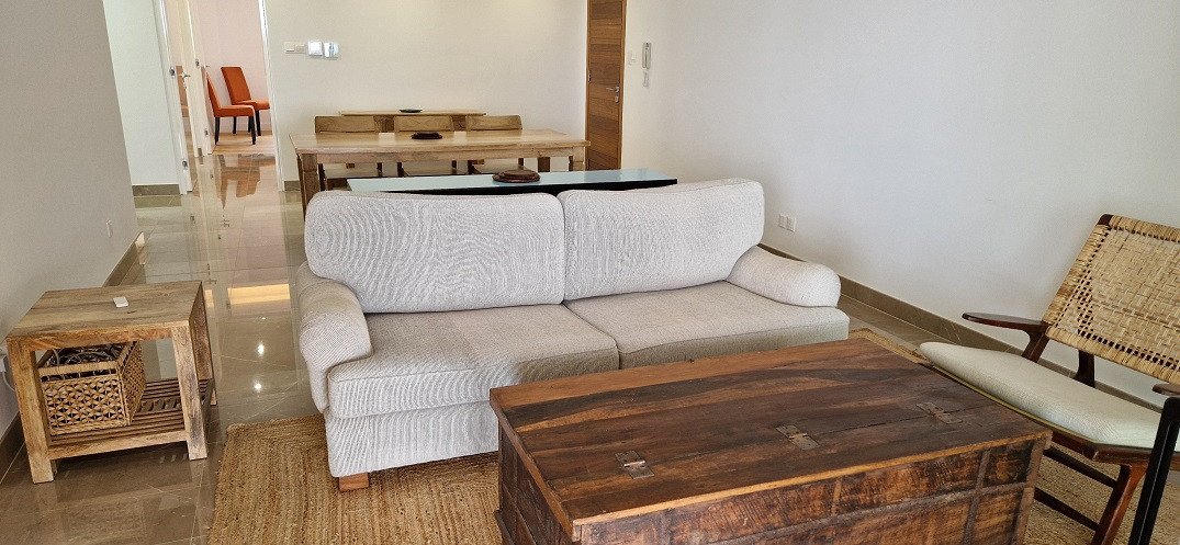This spacious 3 bedroom apartment of 109sqm living area is situated in an amazing location within the complex featuring a generous outdoor veranda of 52sqm overlooking the sea. The property features an open plan living and dining areas with access to the veranda and a separated modern highly thought after and equipped with Bosch appliances kitchen. This property continues with three bedrooms with fitted wardrobes. The master bedroom has en-suite facilities and access to the veranda. A family bathroom concludes the property. The property has been recently renovated to a high standard with quality furniture and appliances. The apartment is sold fully furnished. Title Deeds available. Covered parking available.
