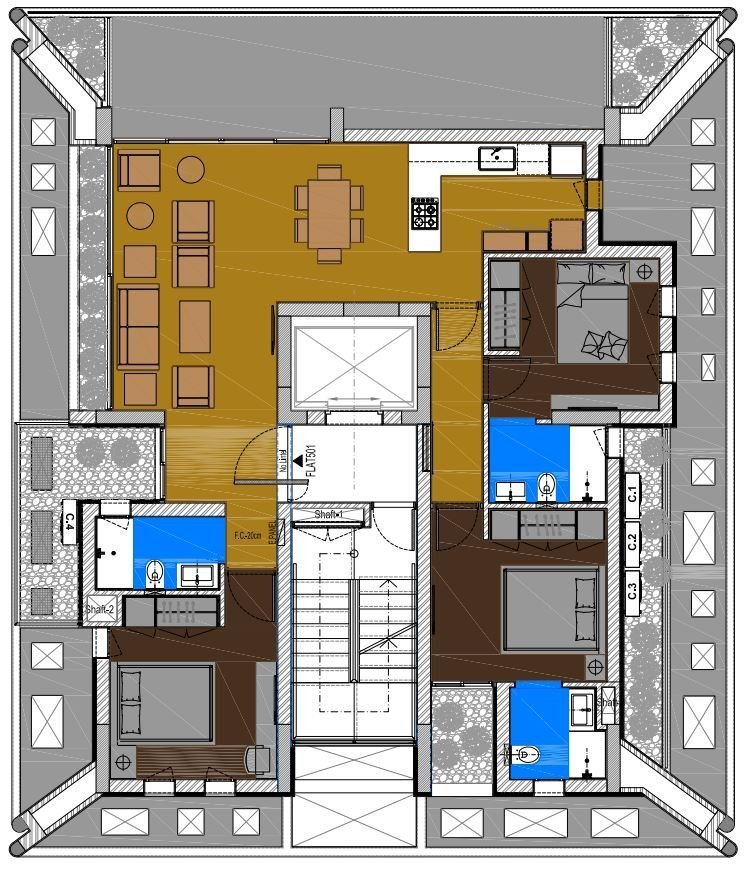 The building consists of 10 apartments ( 5 X 1-bedroom, 3 X 2-Bedrooms, 2 X 3-bedrooms)