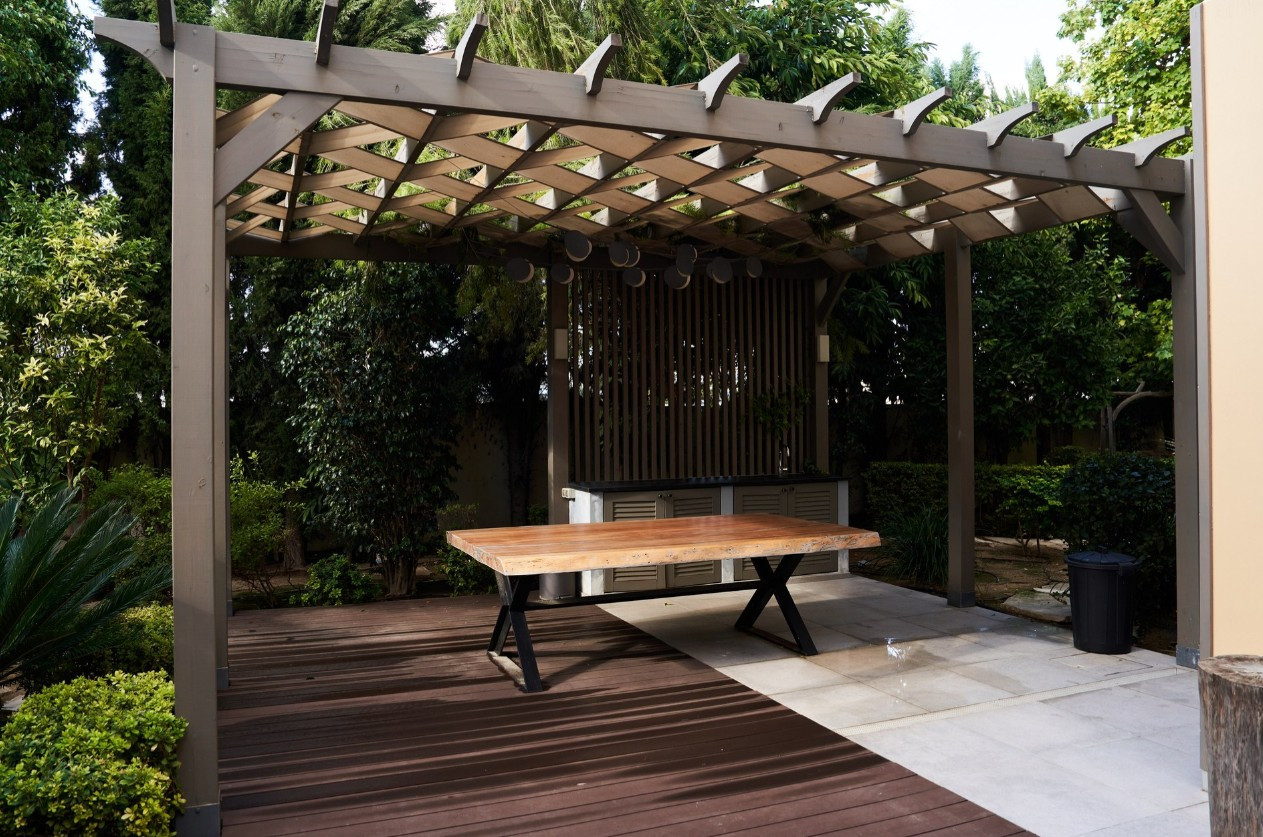 270 m² private green garden with BBQ area & pergola — a true outdoor oasis for relaxing and entertaining.