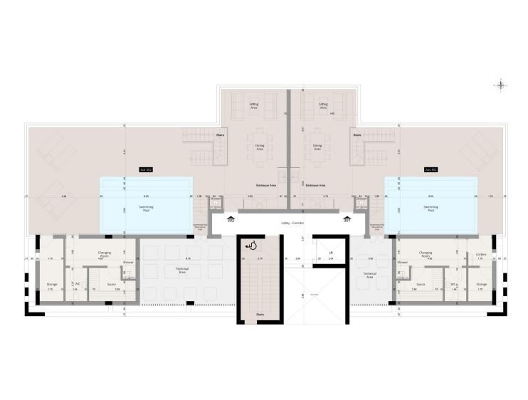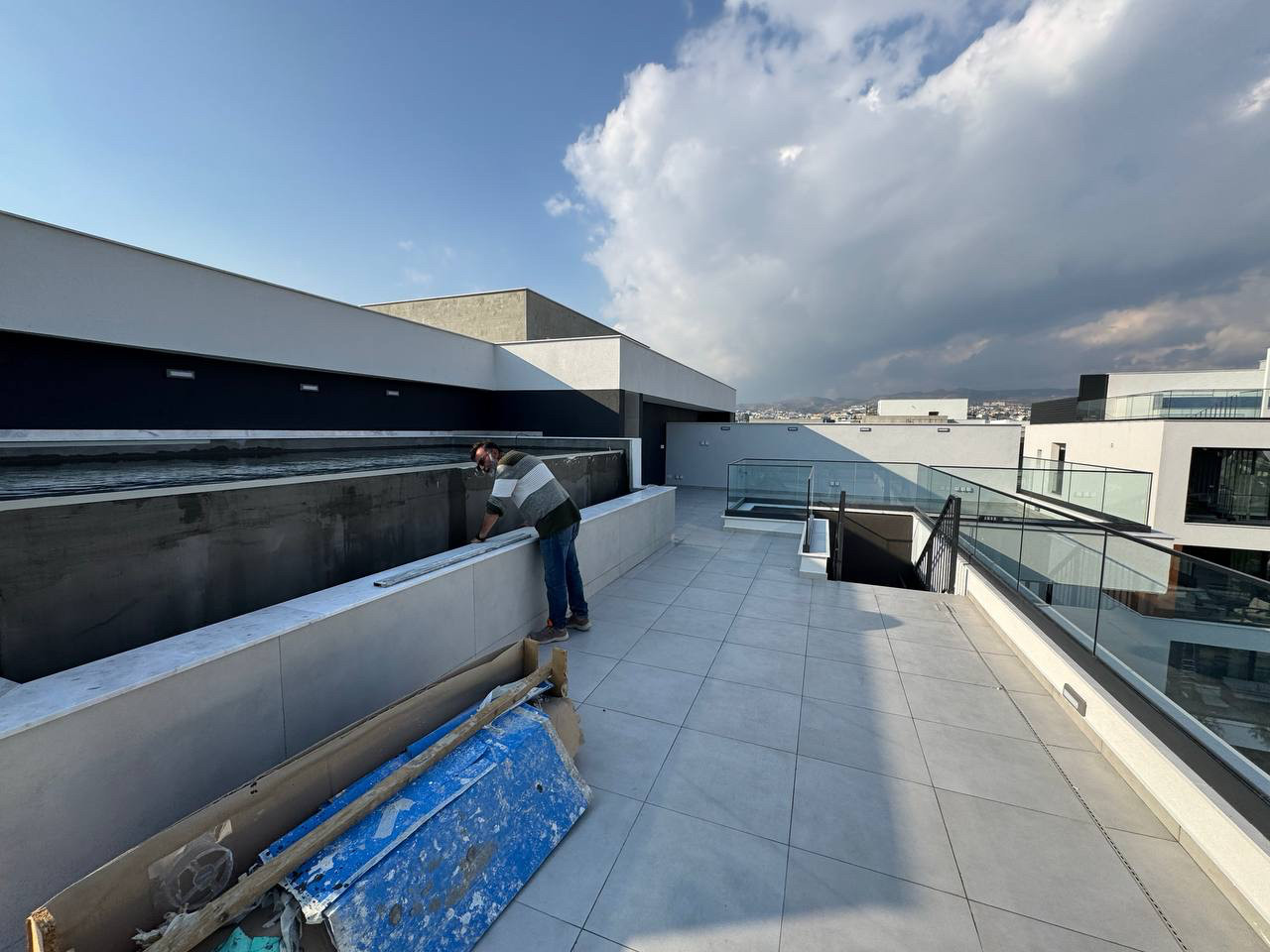 The complex is built on a plot of 1068 m² adjacent to the park and consists of a modern 3-storey building with only 8 spacious one-, two-, three- and four- bedroom apartments an penthouses with private pools on the roof terraces. The common areas of the complex include a gym, an electric vehicle charging point and green areas. Each apartment has one storage room and one parking space, while the penthouses have 2 parking spaces each. The apartments offer stunning views to the sea, to the park and to the city.
