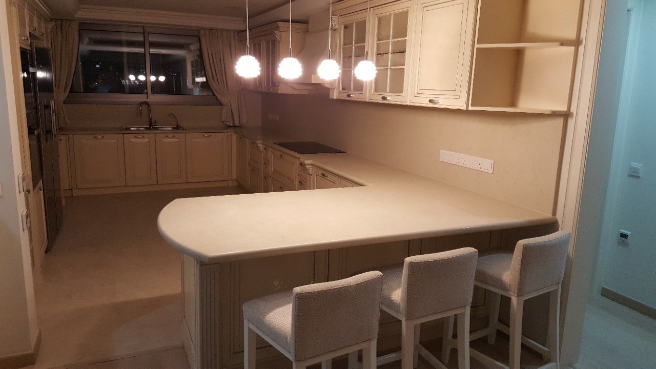 Has undergone a full renovation which was completed in September 2018. The apartment has now a new, open space, modern layout built with top of the range materials and finishes. It comprises a large central common area with tv room, dining area, living area, kitchen with island bar, a guest wc, four (4) en suite bedrooms with bathrooms/wcs,laundry room, a walk in wardrobe and 8 covered balconies offering views from most sides of the floor. The total internal area of the apartment is 222 m2 and of the balconies 30 m2.