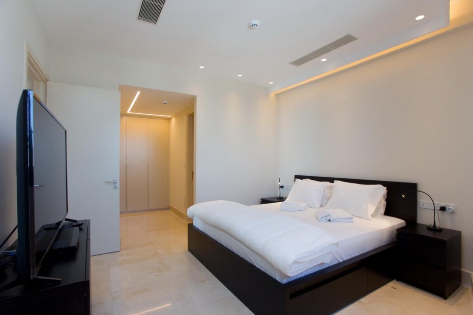 A brand new front line 3 bedroom apartment for sale in Mouttagiaka, Limassol. It is located on the 6th floor of an 18 storey building right on the beach with panoramic sea views. The apartment is fully furnished with high end finished and equipped with underfloor heating, VRV air-conditioning and a smart home system. Some luxuries the apartment offers is a pool, gym, and spa. There is 5* hotel facilities with a 24hr reception, concierge desk and top of the line restaurant in the building.