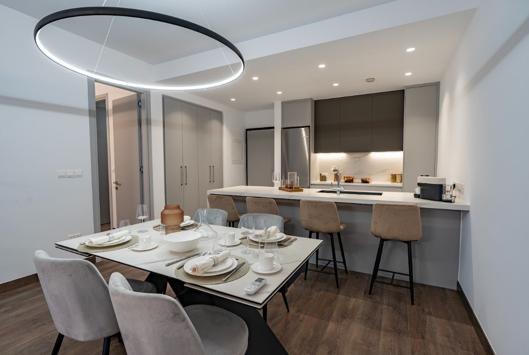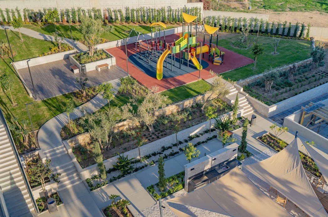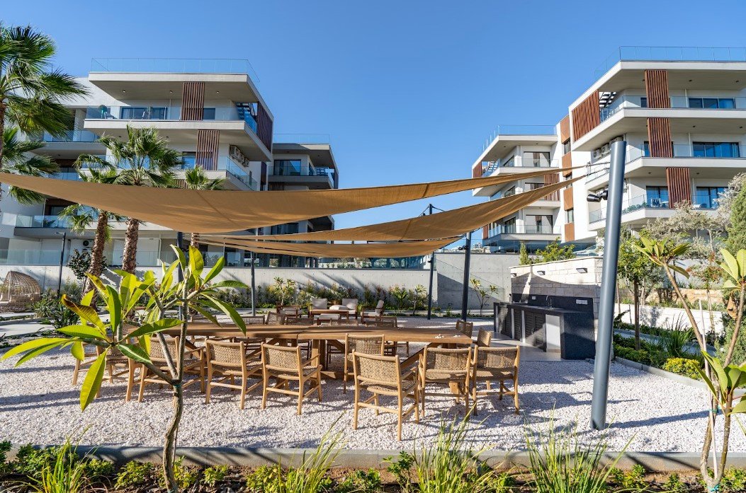 It is a stunning new development nestling in the suburbs of Mouttagiaka, Limassol. Immaculate design, first-class residential facilities and an astounding location surrounded by nature make this exclusive upscale accommodation ideal for families and young professionals. Each property is finished to the highest standard and guarantees peace and comfort for the residents. The project offers a range of accommodation. This includes one-, two- and three-bedroom flats of exemplary design, split between three apartment complexes, Complex A and B house 14 comfortable apartments each, while Complex C has 5 generously sized apartments. All have covered verandas, and some also boast roof gardens and uncovered verandas. In addition, there are five detached villas, all with private gardens and verandas, and some with optional private pools. Residents of the development will additionally benefit from a shared outdoor pool, barbecue area, large playground and covered car parking.