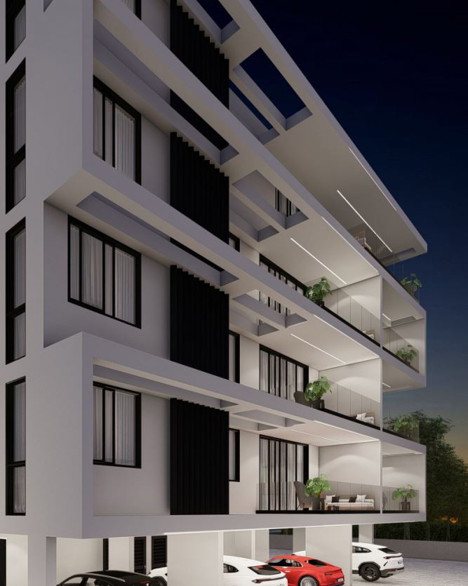 Stylish project located in Engomi, Nicosia. 3 Km from American and Russian embassy, in a quiet residential neighborhood. Close to local shops, cafes, and restaurants.