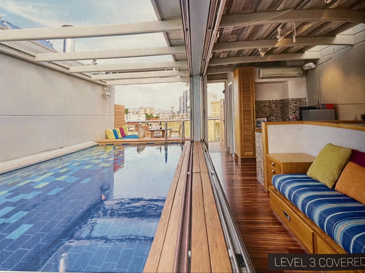 This townhouse is an architectural gem,offering high-standard facilities. It boasts of a modern contemporary interior inspired bynatural textures while the exterior donein grayconcrete and wood offers timeless elegance.The townhousealong with its neighbours is arranged en entlade, along an exterior corridor offering a neighborly atmosphere having as backdrop the beautiful architectural surroundings of Agiou Andreou Street and Columbia Plaza complex.