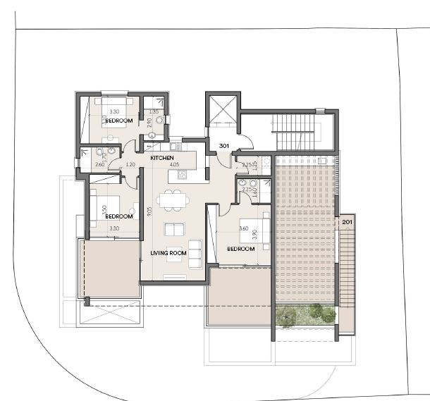 Three bedroom apartment with large balcony is located in the City Center in a quiet residential area, offereing quick and east access to all amenties.