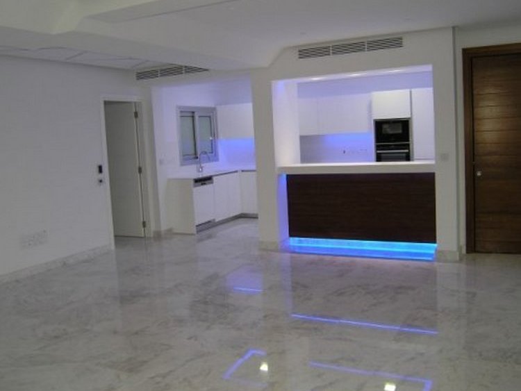 Top quality marble floors in reception and kitchen areas