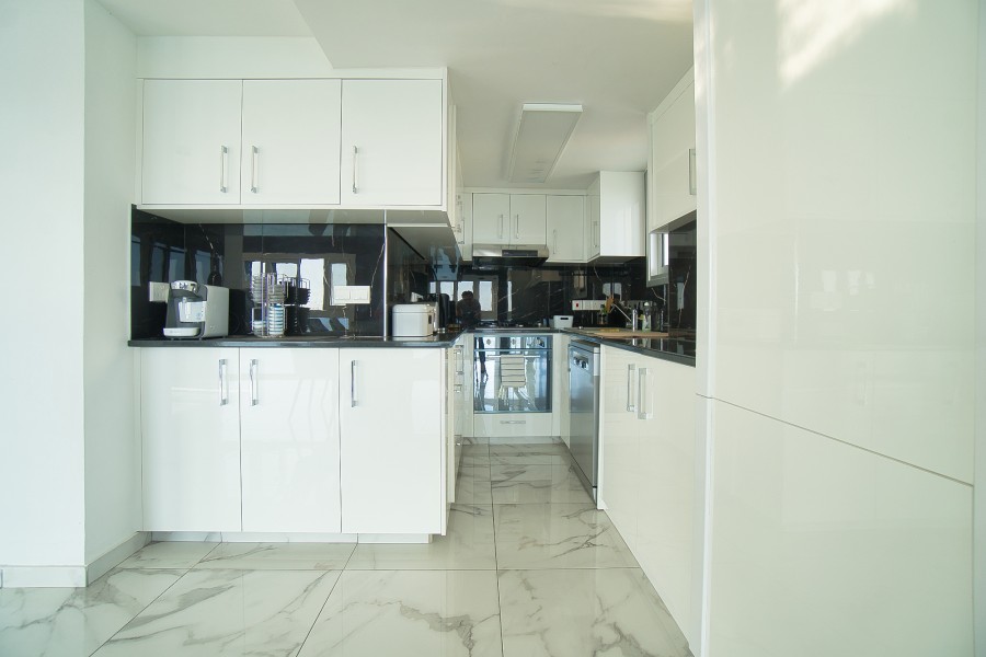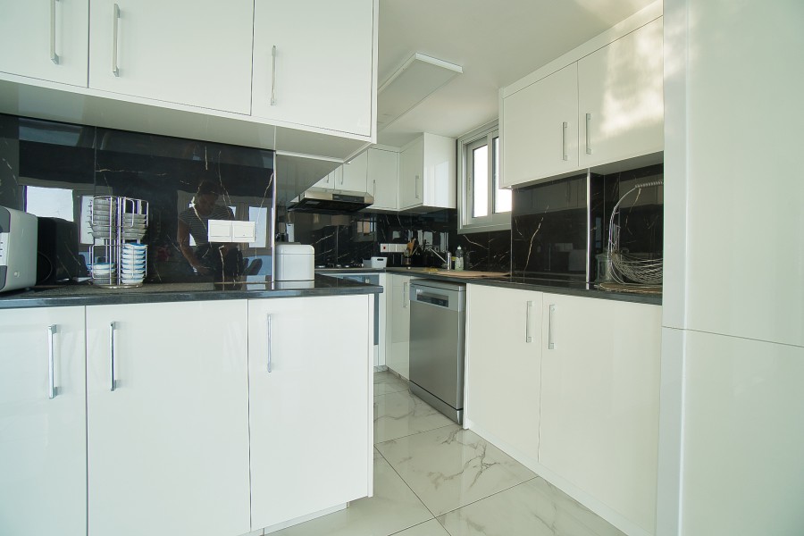 This 3-bedroom apartment features two ensuite bedrooms, an additional smaller bedroom, and a separate main bathroom. The apartment consists of an open plan kitchen with granite worktops with living/dining area. There are also solar panels, double glazed windows and water pressure pump.