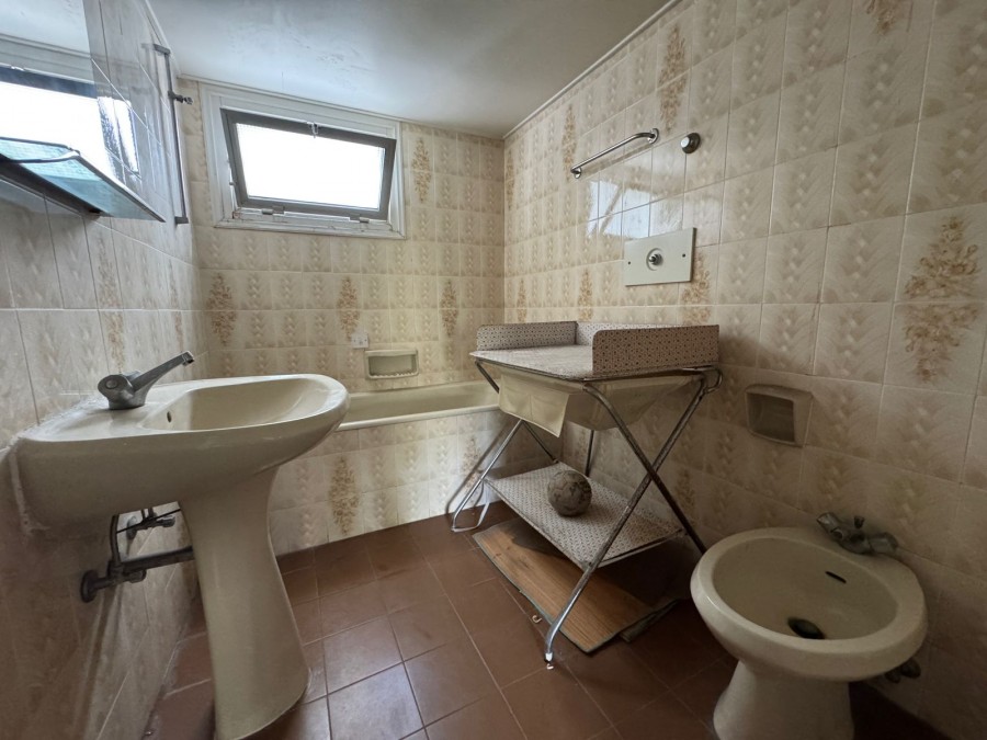 Part of a well-maintained complex built in 1982, the residence boasts a beautifully landscaped garden for residents to relax and unwind. Although the apartment requires a full renovation- having been unoccupied for many years- it presents a rare opportunity to own a prime seaside property.