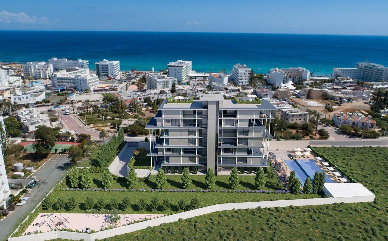 Located just 400 metres from a shimmering expanse of pristine beach, the uniquely elevated setting of residence commands a prime position that offers unobstructed sea views in the heart of Protaras. With just a total of 20 one, two and three-bedroom apartments with every residence enjoying unobstructed and sweeping sea views from floor-to-ceiling glass fronts and balconies. Two ultra-luxe penthouses crown the building and each boasts a private roof garden and swimming pool that gracefully touch the horizon.