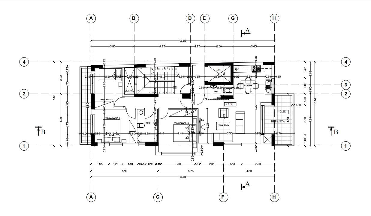The building of 3 floors consist of only 3 apartments - one apartment on each floor. All apartments are spacious with the nice verandas and the penthouse with the roof garden.