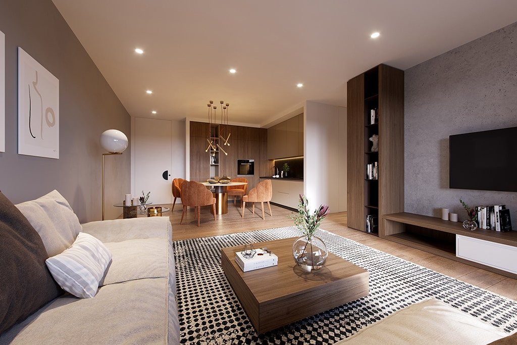 An impressive collection of one, two and three bedroom apartments, topped by stunning four bedroom penthouses.