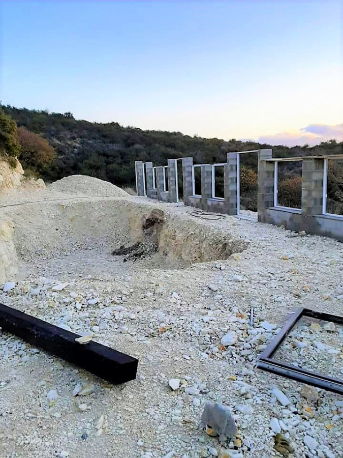 Bungalow under construction in Armou with unobstructed amazing views and surrounded by green land. It is just 2 minutes drive to Minthis hills golf course and has it's own private road.