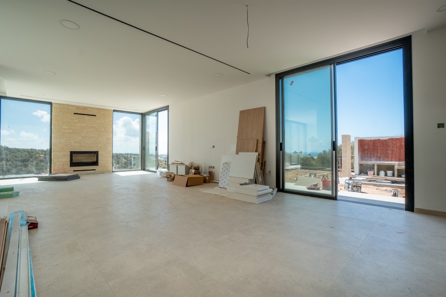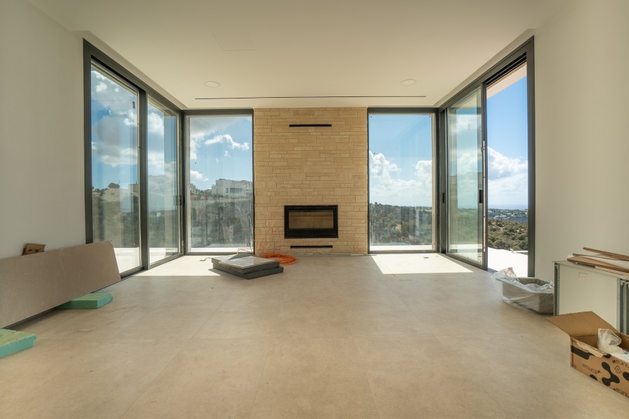 This beautiful home is built with a strong reinforced concrete frame that meets the latest European earthquake standards. The 25 cm thermal clay brick walls provide excellent sound and heat insulation. The roof has 8 cm of insulation, a double waterproofing system, and a reflective finish for better energy performance. The exterior includes 8 cm insulation, plaster, and decorative stone details. Inside, the walls are smoothly plastered and painted. Bathrooms are fully tiled with high-quality Italian porcelain, and the same large-format tiles are used throughout the house, verandas, pool area, and garage. Ceilings are painted with a smooth matte finish. The house has energy-efficient aluminum windows and sliding doors with triple-glass protection. Interior doors have concealed hinges and magnetic locks, while the main entrance door combines iroko wood veneer with a secure metal frame. The modern kitchen includes BOSCH appliances, a granite countertop, soft-close drawers, and built-in cabinets. Bedrooms have built-in wardrobes, and the laundry room comes with cabinets, a granite top, MIELE washer and dryer, and extra storage. Bathrooms feature GROHE faucets, IDEAL STANDARD sanitary ware, LED mirrors, glass shower screens, and in the master bathroom, a bathtub, double sink, and heated towel rail. A Rocal ARC100 fireplace adds warmth and style to the living room. Outside, there is a 4 m × 12.5 m overflow swimming pool with lighting, automatic refill, and underground storage. The garden is fully fenced, landscaped with irrigation, and includes automatic sliding gates. The covered two-car garage has automatic doors and is ready for an EV charger. A BBQ area includes a granite countertop, stainless steel sink, and built-in Beefeater gas grill. The smart home system controls lighting, curtains, underfloor heating, air conditioning, and CCTV. A 10 kW solar system provides renewable energy. Heating is via LG Hydrokit underfloor heating, cooling is from an LG VRF system, and hot water comes from a 300 L LG heat pump with a 1,000 L water tank. Wi-Fi covers the whole house and garden, and outdoor lighting highlights the verandas and pathways. This home offers modern design, comfort, and energy efficiency — the perfect combination for a luxurious, easy lifestyle. This home combines luxury finishes, advanced technology, and energy efficiency to offer a comfortable, modern lifestyle.