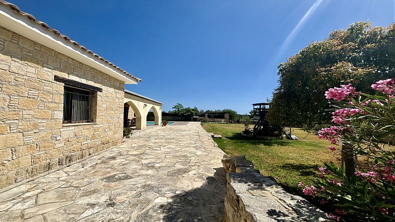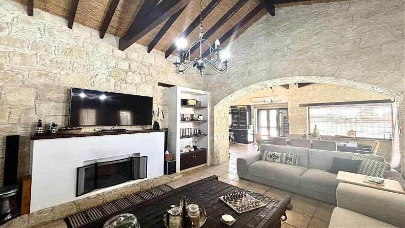 Experience the perfect blend of traditional charm and modern comfort in this beautiful and very stylish 3-bedroom detached stone house, located in the serene area close to one of the most picturesque villages in the Limassol region- Laneia. This exquisite residence, with a total internal surface of 124m², sits on a spacious 2135m² plot, offering a peaceful retreat just less than 30 minutes from the bustling city life.