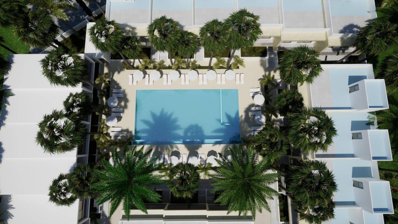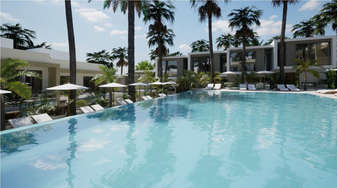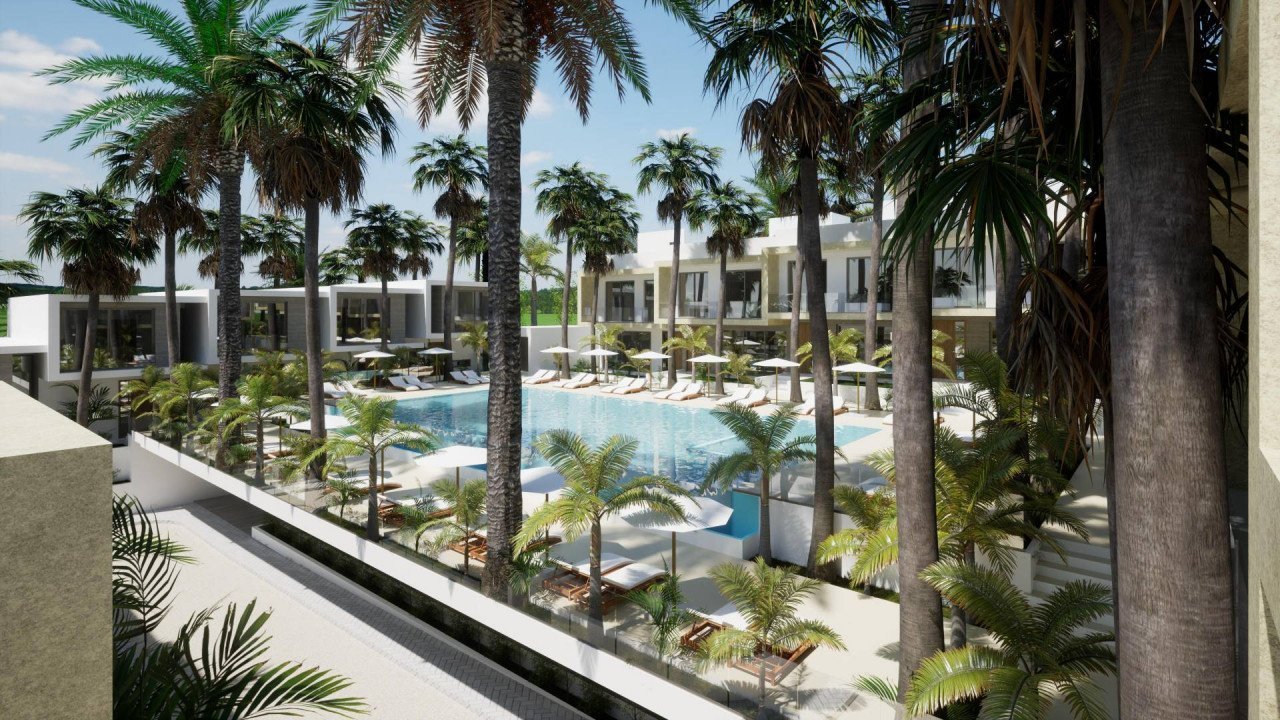 It has nine 2-bedrooms houses and twenty six 3-bedroom houses. There is a communal swimming pool of 200 m2 in a pool area of 587 m2. Parking space area and public green area are also included.