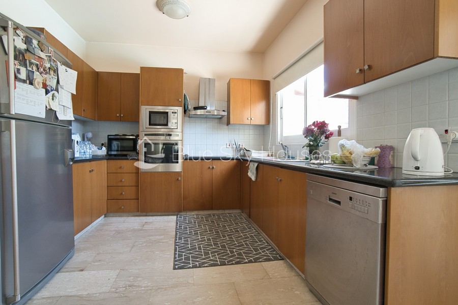 Outdoors, the property offers a private swimming pool, covered parking for two cars, and space to enjoy the sunny Cyprus weather. A great choice for families looking for a well-designed home in a quiet, well-connected area.
