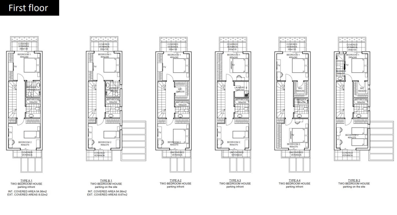Each unit features an additional above-ground space on the lower level, which can be converted into living quarters if desired. Plumbing installations are already in place here, although this option is not included in the standard design. Additionally, there is a separate laundry area on the roof, which can also be transformed into extra living space, such as an additional bedroom.