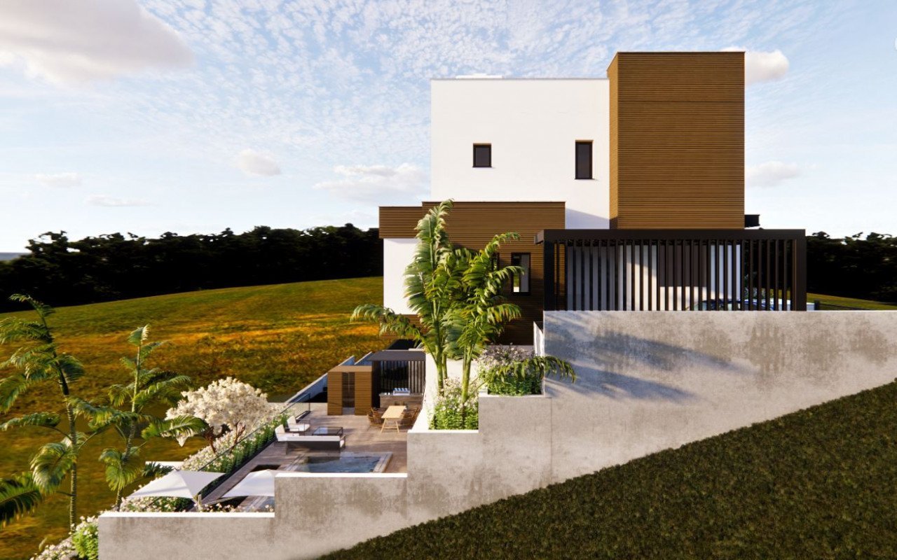 Each villa has an open lower ground are with optional, swimming pool and garden.