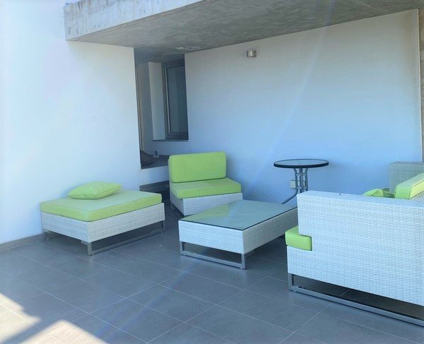 It consists of an open-plan living room with the dining area, separate kitchen, big veranda, 2 bathrooms and parking space.