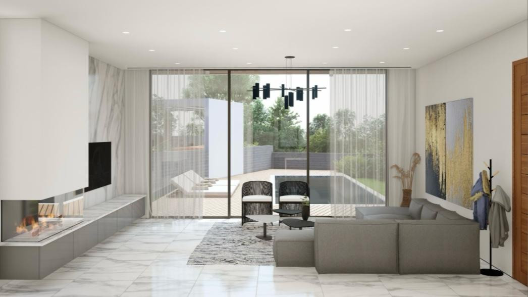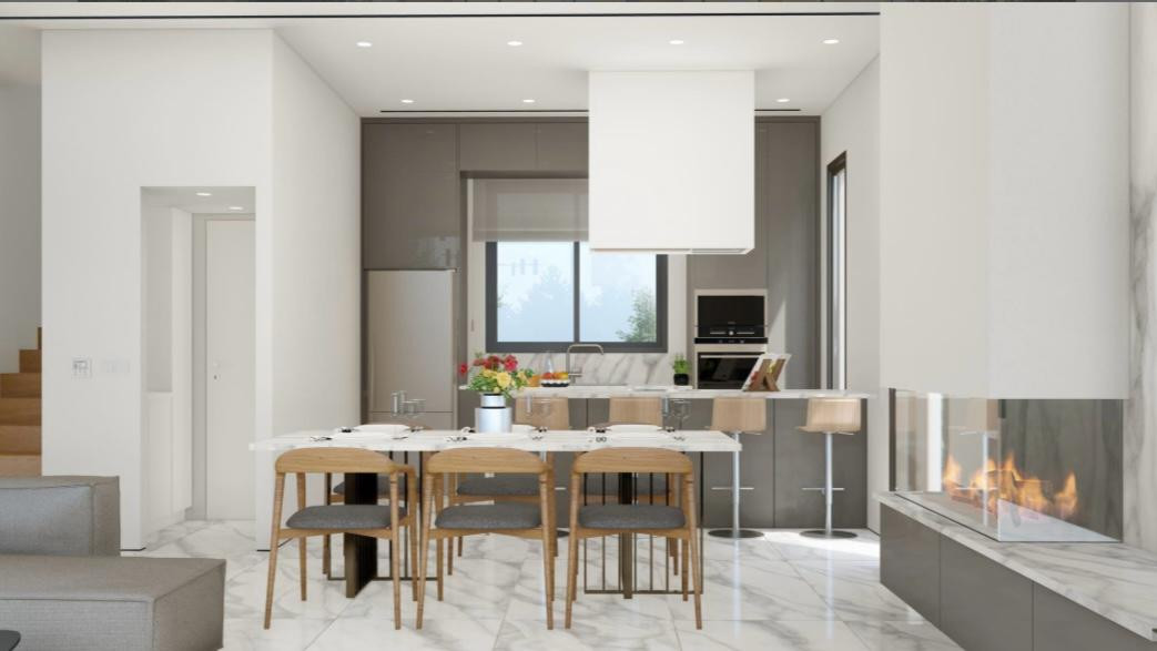 On the first floor open plan living room with kitchen and guest toilet. On the second floor 3 bedrooms with en suit bathrooms.
