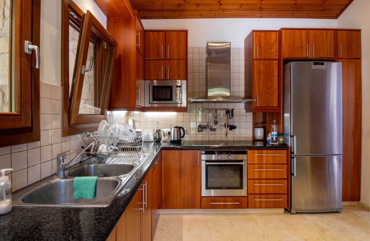 Stepping out of the living and dining rooms through the wonderful French doors, one will notice the gardens below that reflect traditional Cypriot landscaping, a very large swimming pool and a very spacious terrace and BBQ area to accommodate large gatherings when socializing. The garden offers mature trees and aromatic plants and shrubs.