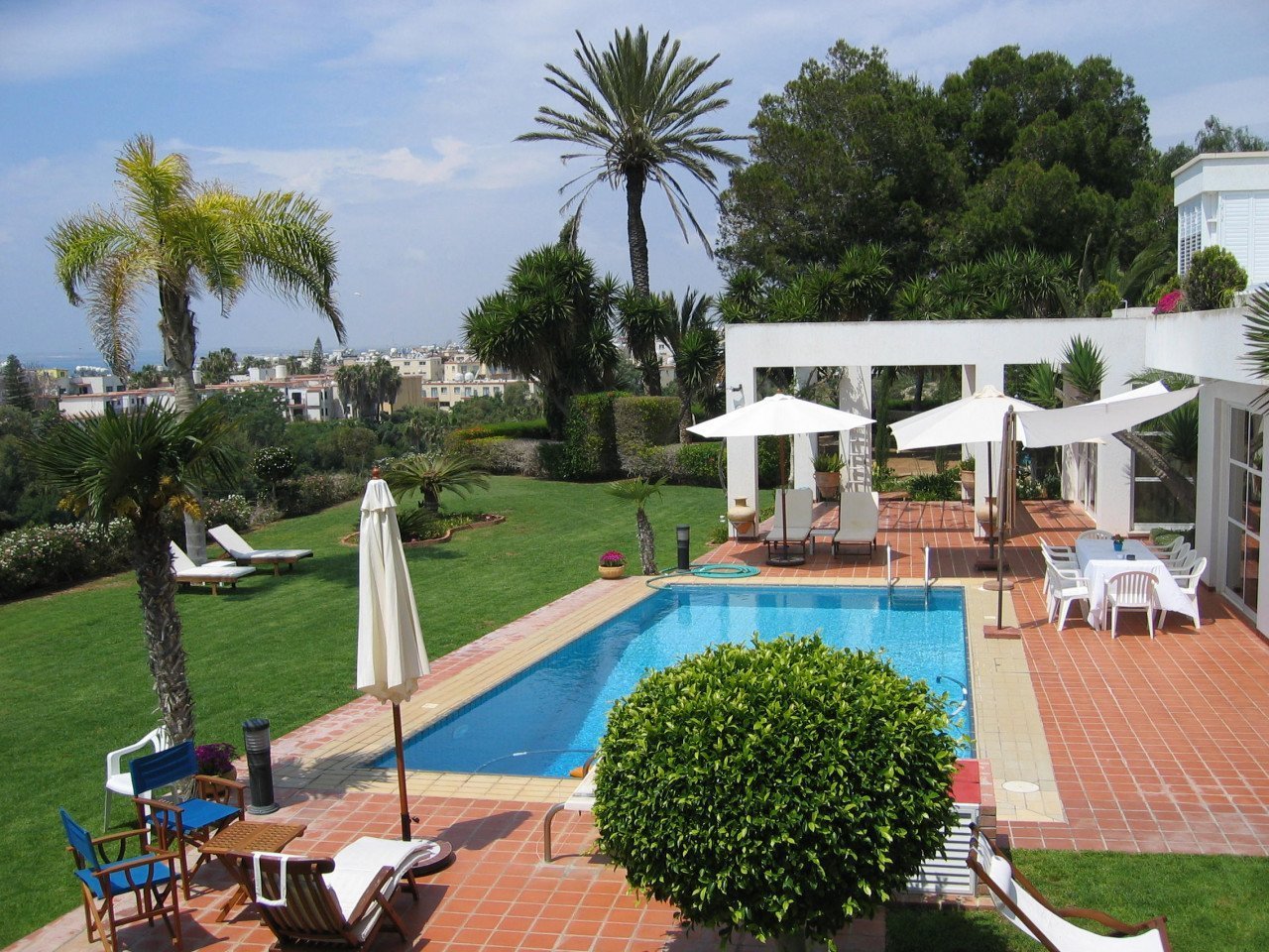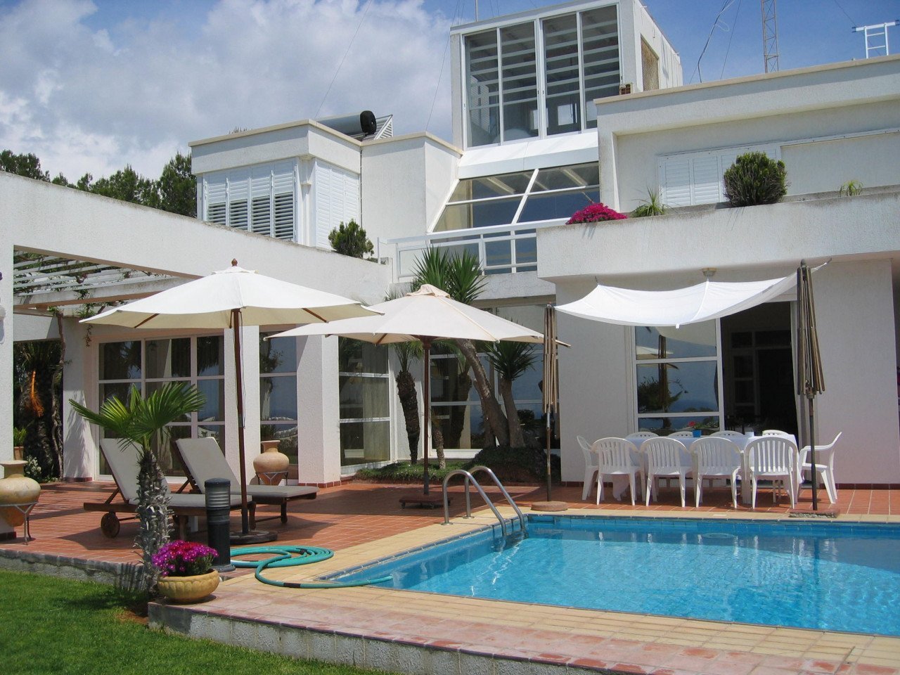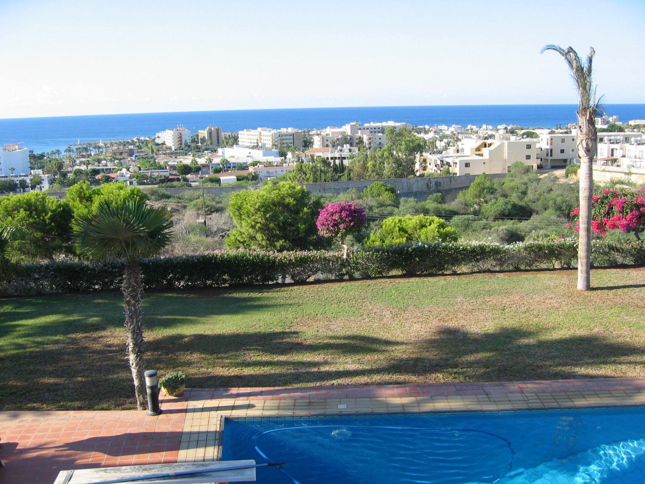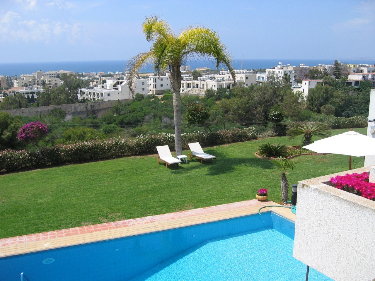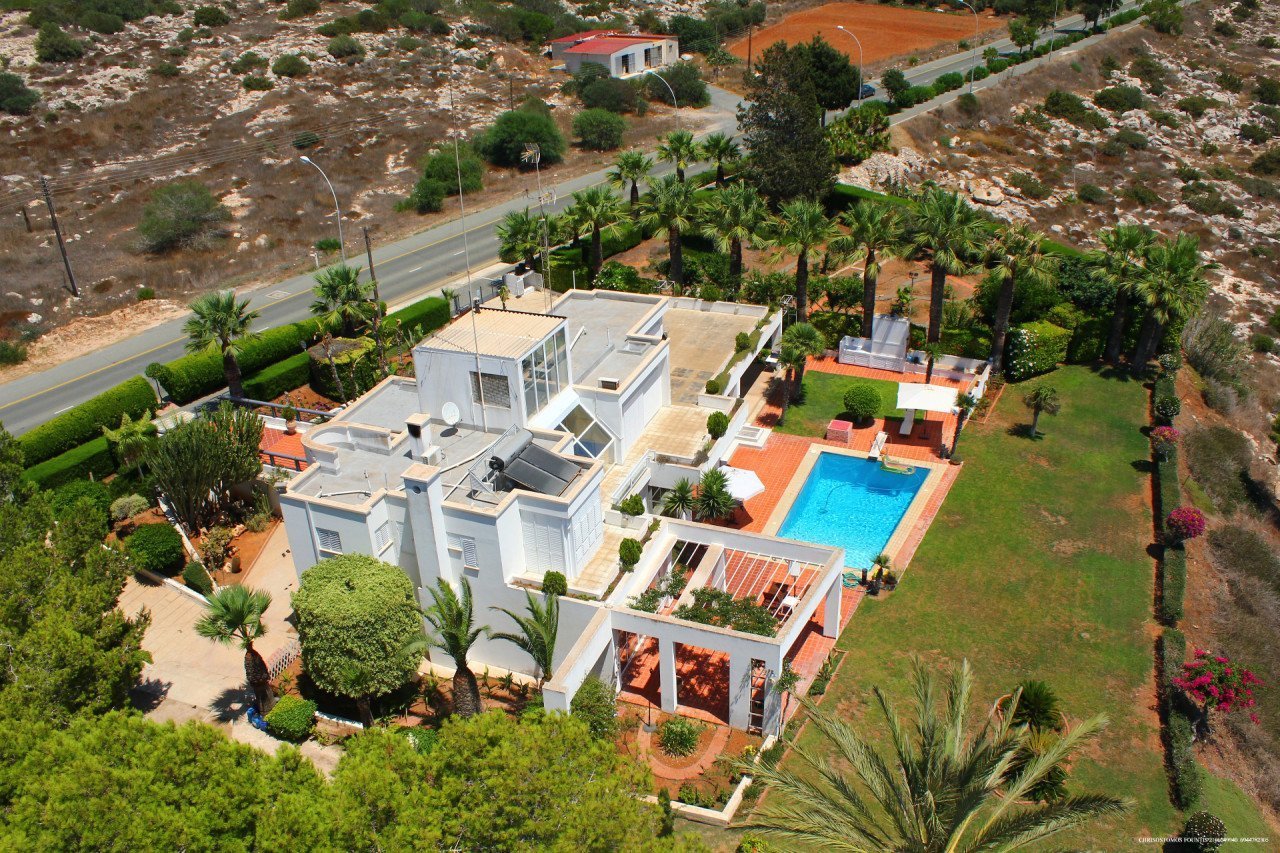 The ground floor is consisting of a guest toilet, utility room, and a storage area, and all of them have access to the garden. Upstairs there are 3 double bedrooms and a family bathroom. The master bedroom hosts a large en-suite. The rear balcony has amazing views of the garden, and the Mediterranean sea and is an ideal place to watch the sunset and the resort of Ayia Napa come to life at night. Set on immaculate grounds the property offers a large swimming pool surrounded by a mature garden that offers unobstructed views of the sea.