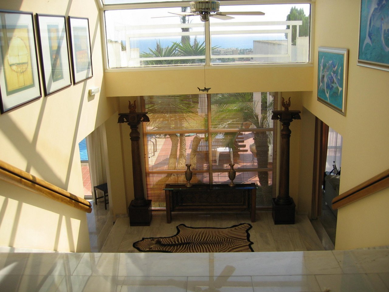 The property has been tastefully decorated and furnished with large open-plan living spaces. Upon entering this unique property, you are welcomed by a featured staircase that leads to a beautiful lounge with a classy bar and a dining area.