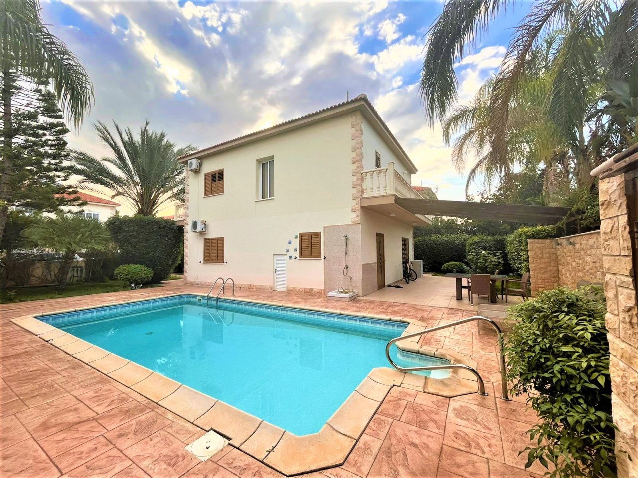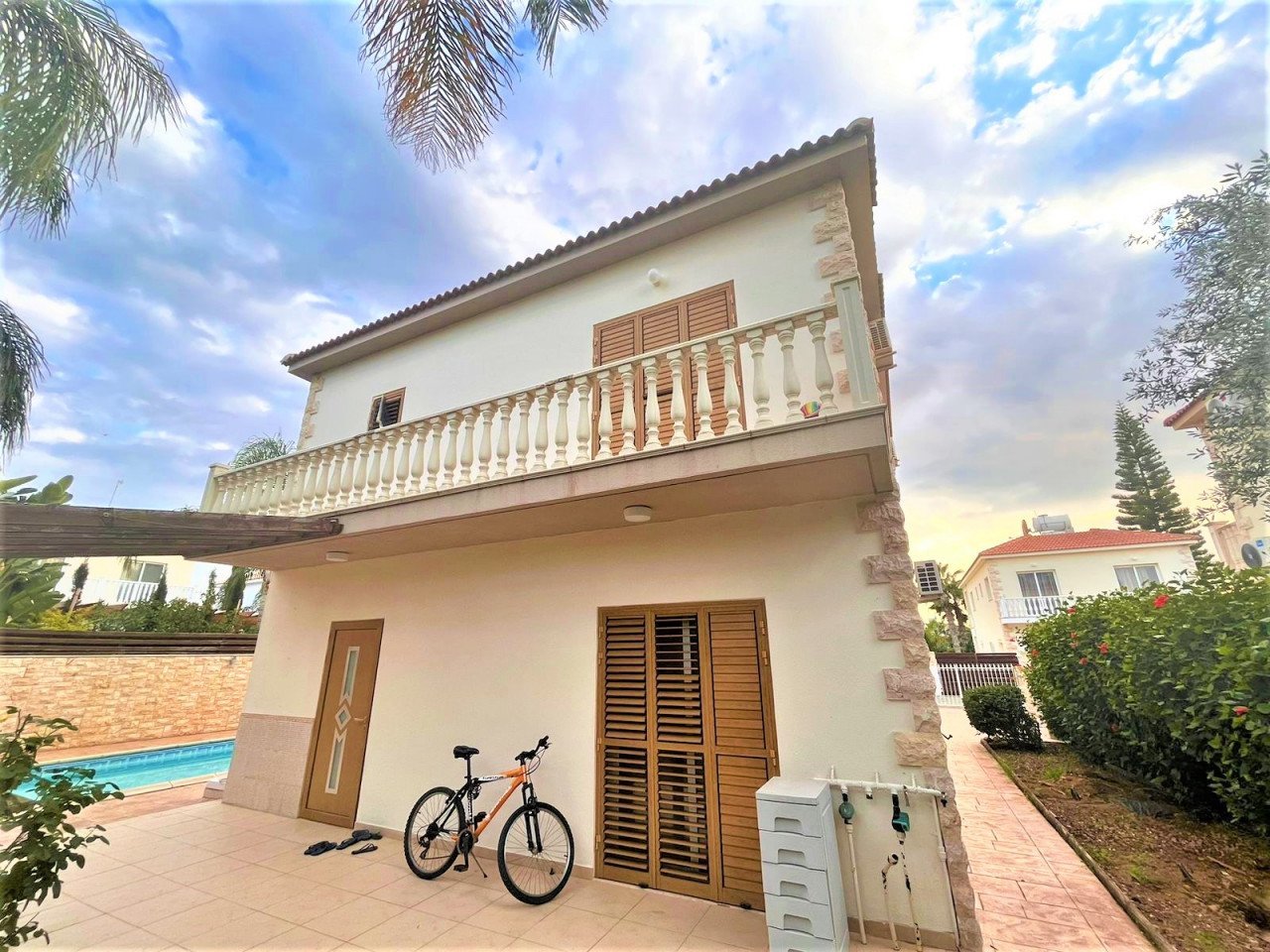 A unique and stunning 3-bedroom Villa located in a quiet neighborhood in Ayia Napa, just a few minutes away from the best and most famous beach of Ayia Napa, Nissi Beach. It consists of 3 spacious bedrooms, a fully equipped kitchen, a spacious living area and 2 bathrooms. The main bedroom has an en-suite private bathroom, and all the bedrooms have huge balconies. Furthermore, the villa has a huge plot size which surrounds the villa with mature garden. At the side of the villa the private swimming pool will offer summer parties! Additionally, the house is being sold fully furnished/air-conditioned and has title deeds!!!