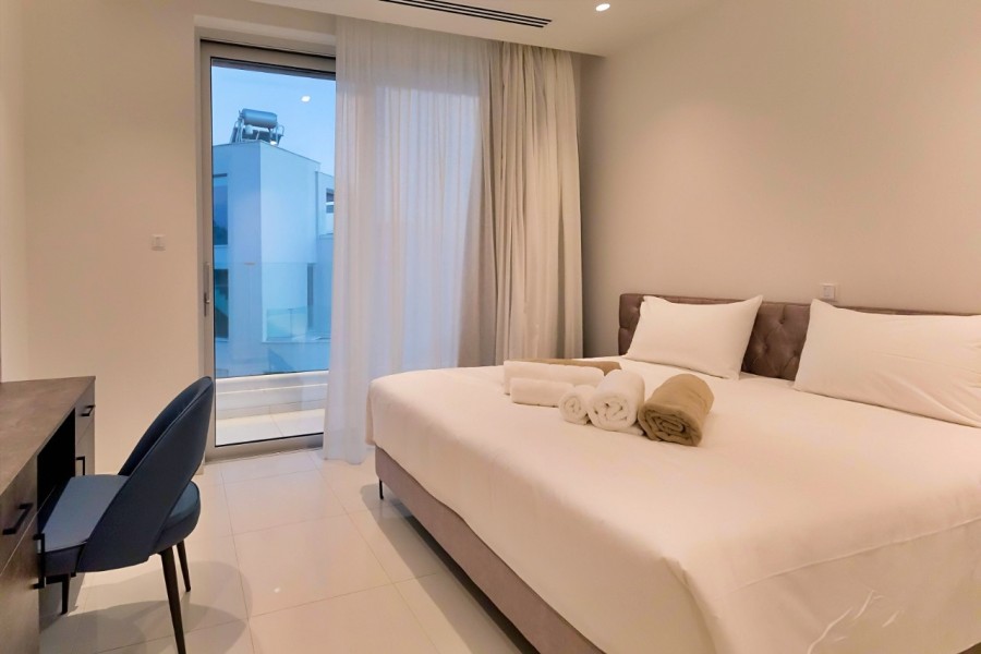 This property offers breathtaking views of the famous sea caves near Ayia Napa, just 200m from the beach and within walking distance of the town center, blending the vibrant energy of Ayia Napa with serene natural surroundings set on the hills with great privacy. This beautiful Villa offers 3 ensuite Bedrooms an open plan kitchen and dinning area and a guest WC on the ground floor. Additionally a beautifully designed roof garden offers a Jacuzzi facing the sea and a covered area to enjoy your BBQ with the most stunning views of the sea caves that will make you never want to miss a sunset again. The villa’s striking design combines modern high-end architecture with luxury and originality. Stone elements and HPL finishes blend seamlessly with the environment, while large French windows flood the interior with natural light. The spacious plot features a large garden and a private swimming pool. Its elevated position ensures stunning sea views, both indoors and out.
