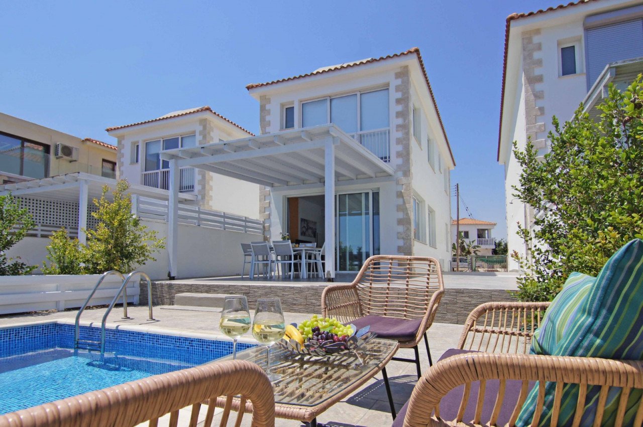 This beautiful villa is located in the highly sought-after Ayia Thekla area, just a stone's throw away from the new marina of Ayia Napa. The villa is situated on a spacious plot of 600 square meters and has a covered area of 140 square meters.