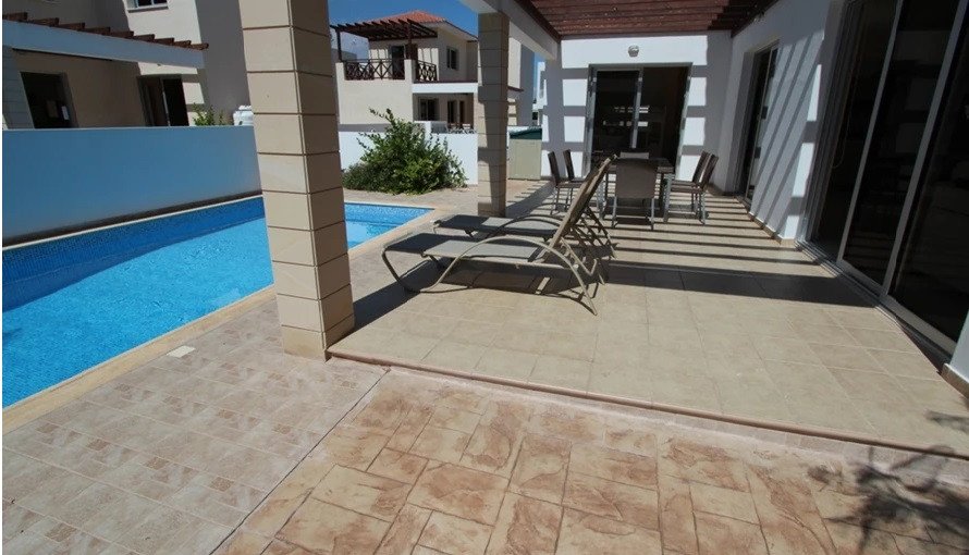This superb Villa is a part of a complex but has a private garden and a private pool. What more can you ask, when you are just a minute away from one of the best beaches in Cyprus? Located within stunning surroundings in the highly popular Konnos bay and Green Bay area of Protaras. Numerous sandy beaches with crystal clear waters are located within strolling distance of the villa, including two of the areas EU awarded Blue Flag beaches. The development is situated just a minutes’ drive from the Cape Greco National Forest Park and sits between the beach resorts of Protaras and Ayia Napa, which both offer an abundance of amenities for visitors to the area.