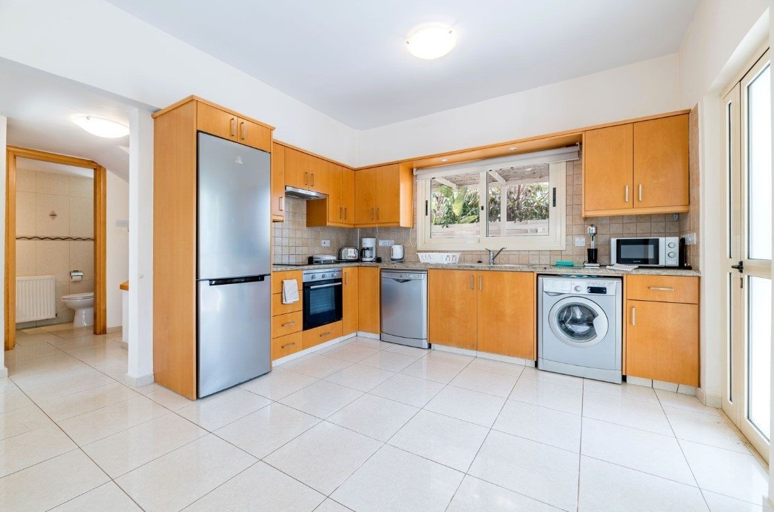 This stunning 3 bedroom villa is situated in the highly sought-after neighborhood of Cape Greco, known for its serene surroundings and natural beauty. The villa boasts a spacious and well-designed open plan kitchen-living room, which leads to a large outdoor pool area, perfect for relaxation and entertainment.
