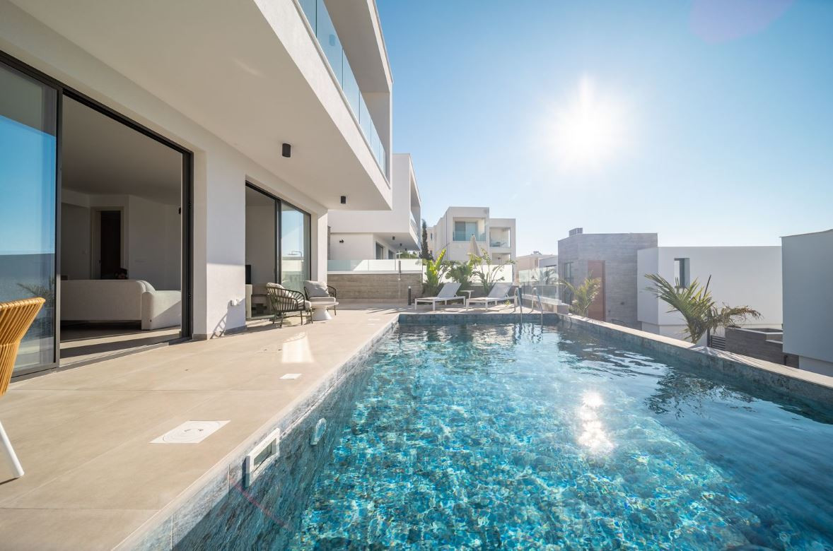 This exclusive development is situated in an affluent neighborhood, in the most prestigious district of Paphos.Is in the beautiful outskirts of Chloraka, Paphos. A stunning 3-bedroom villa for resale. This villa features a private pool and is in very close proximity to a variety of facilities such as restaurants, bars, shopping centers, private schools, hotels, and supermarkets.The excellent location allows residents to enjoy unique views of the Mediterranean Sea and the exceptional sunsets of Paphos. Innovative design from our team, always with respect to the environment, uses high-quality sustainable materials with an energy Class A certificate from the relevant authorities