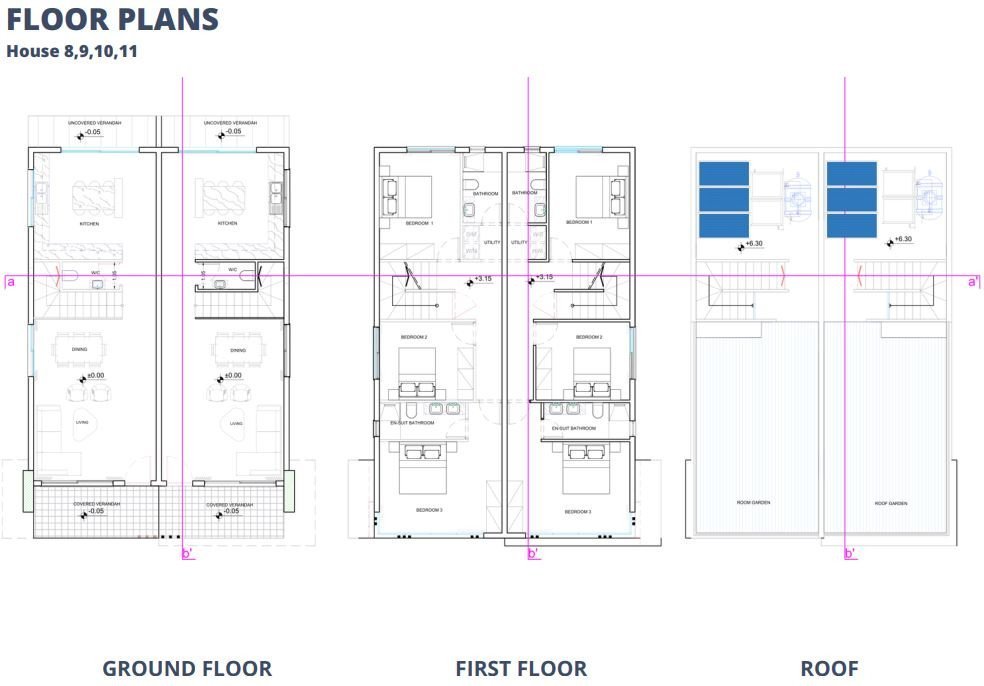 This exclusive project encompasses eleven 2- storey houses, a range of 2 and 3-bedroom residences,each boasting 2-3 bathrooms. The properties feature optional swimming pools, adding a touch of luxury to the serene landscape.