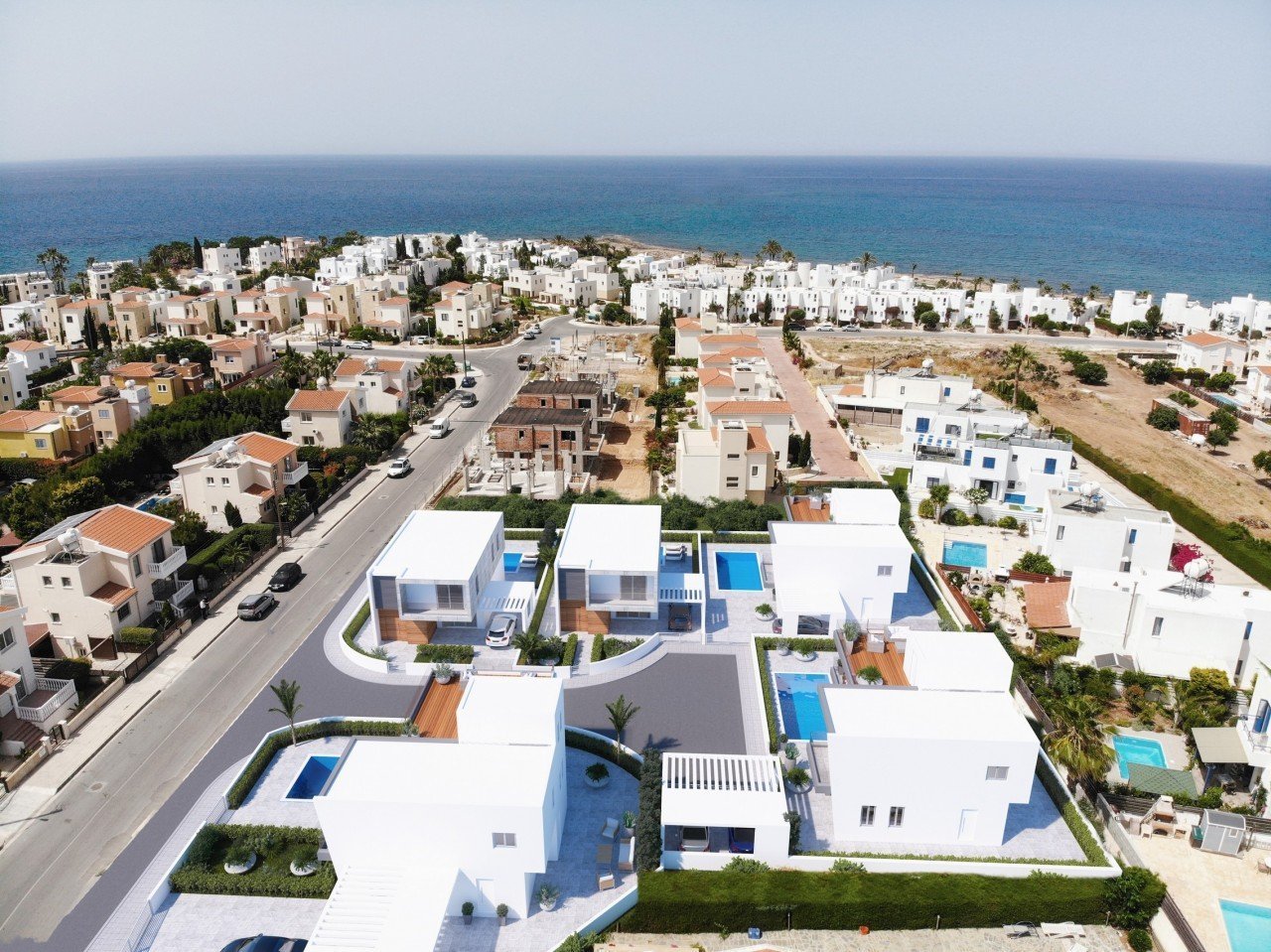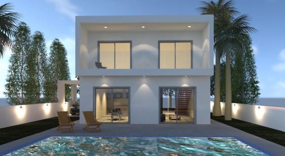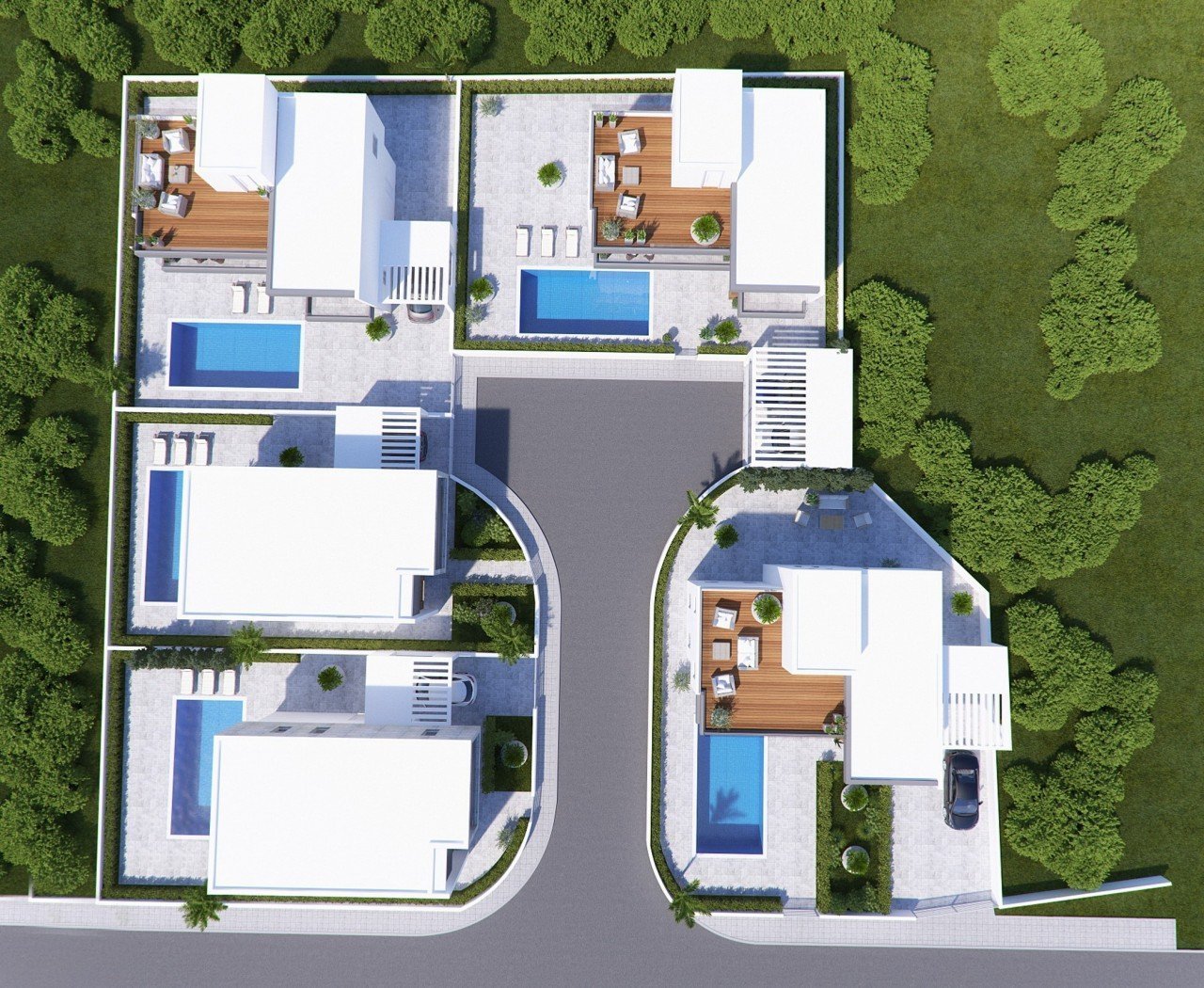 This complex is being developed in Chloraka,5 minute drive to Coral Bay and 8 minute drive to Paphos City Centre. Offering luxury Independent villas at affortable prices without eliminating quality of construction. All types of houses will be built with high quality materials and private swimming pools,as well as covered parking, will be included.