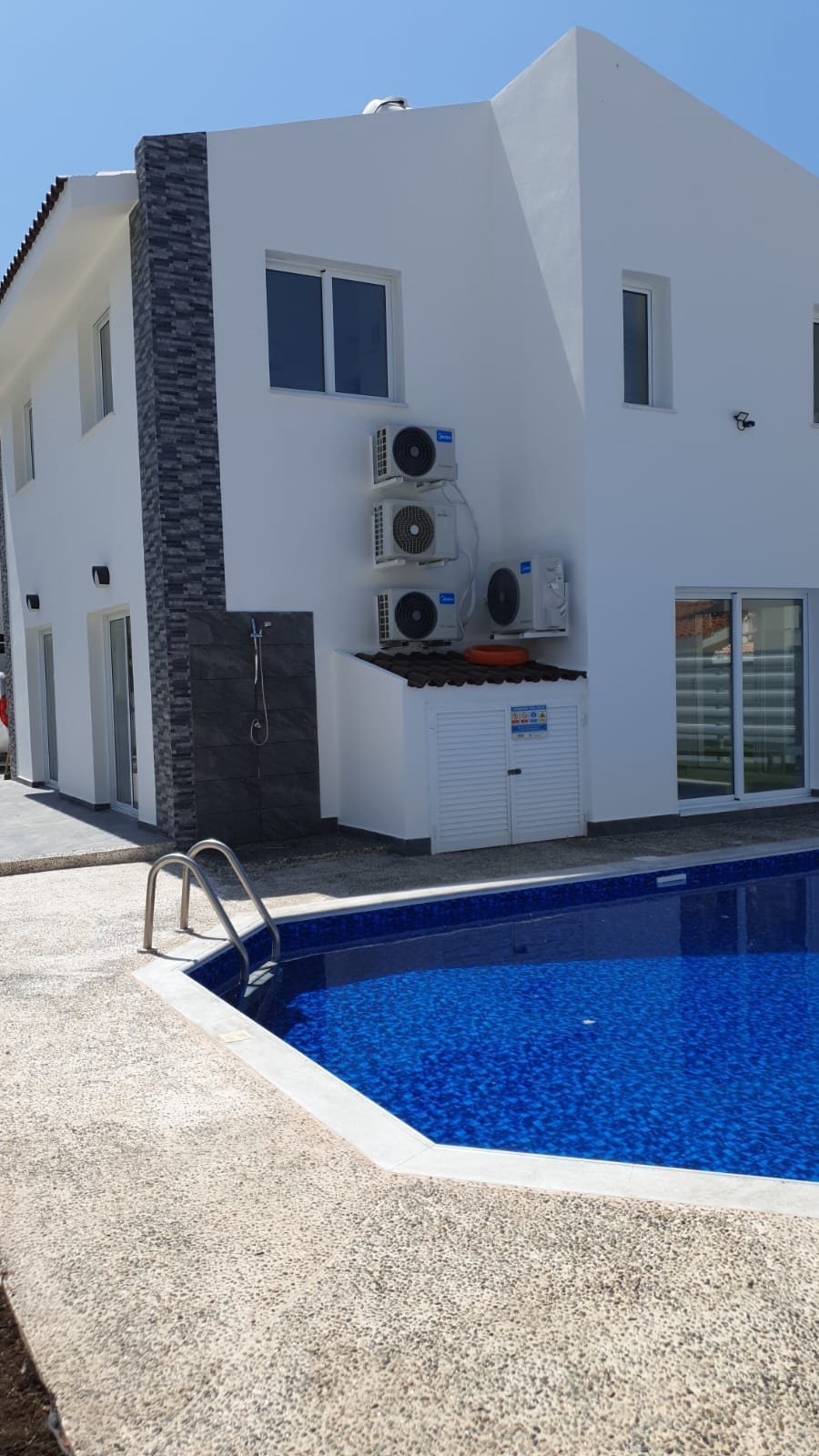 The villa is located within walking distance to all amenities and the beautiful sandy beach of Coralia Bay.