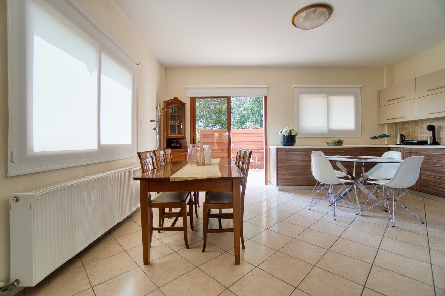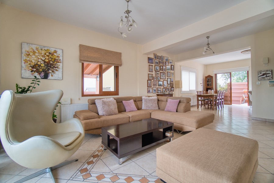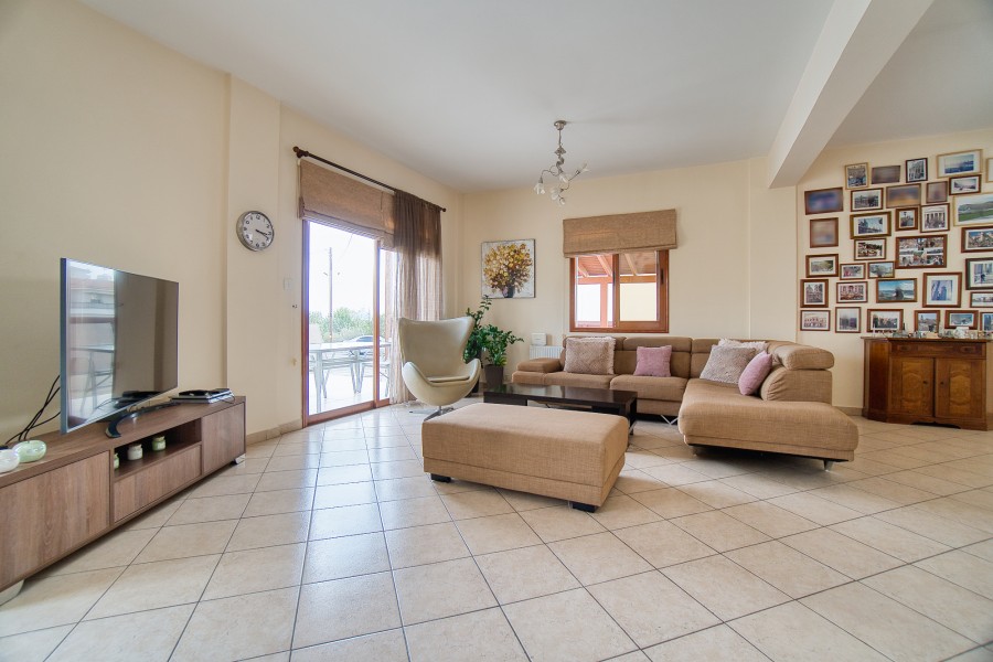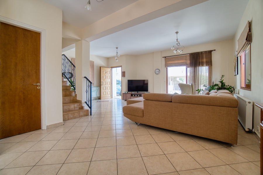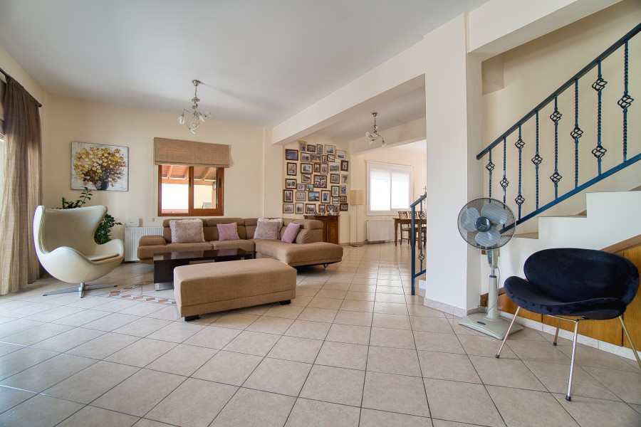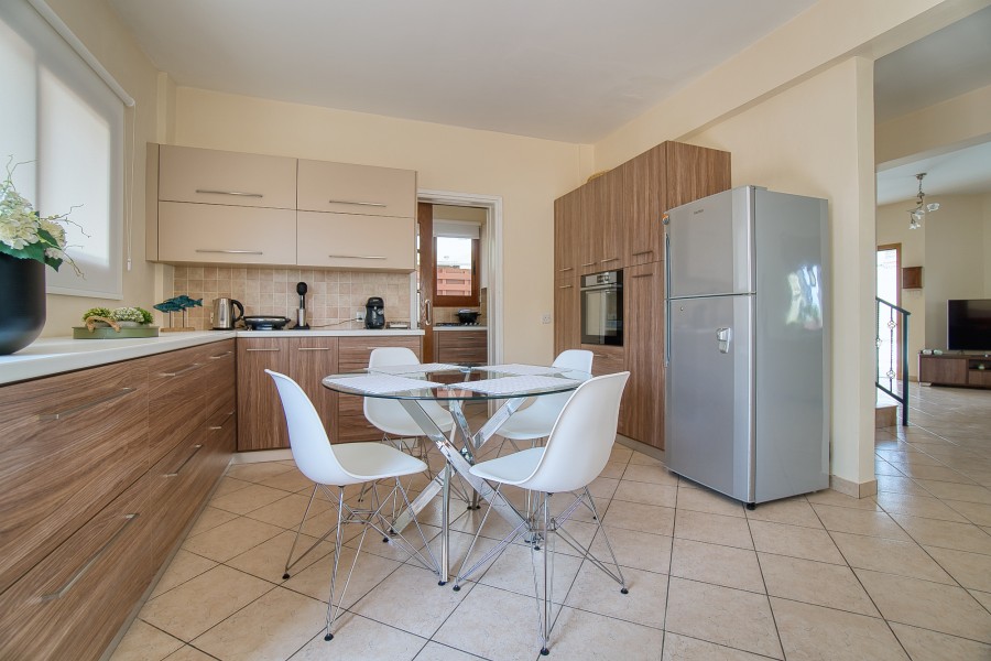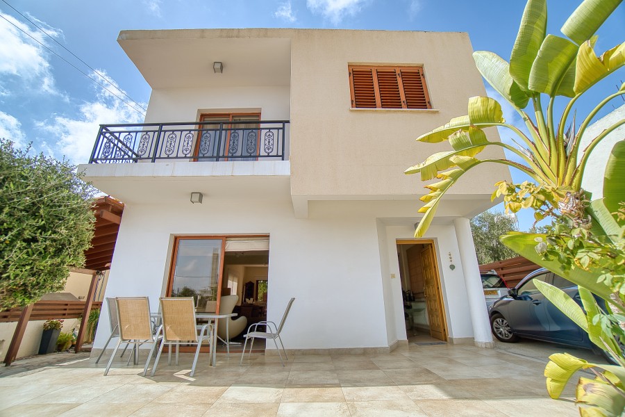 This charming three bedroom villa is situated in a popular yet quiet residential area of Emba Village and is being offered in good order throughout. It is within close distance to the village square where taverns, supermarkets, banks can be found, and is just a 5-minute drive to Paphos town. A private driveway leads to the property and offers parking space. The main entrance leads into the spacious Main Living Area which is open plan to the Kitchen. The good size kitchen is well equipped with wall and base cupboards, Granite Worktops and White Goods. Patio doors from the living area lead out to the covered veranda. On the first floor there are three double bedrooms and family bathroom.